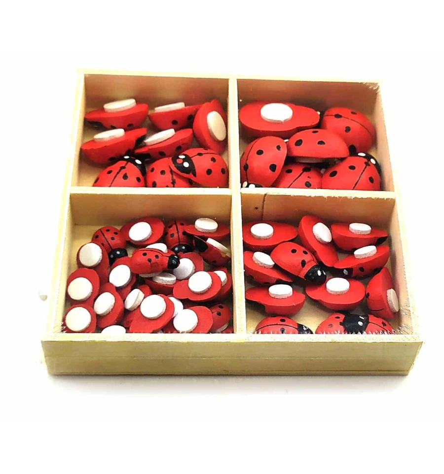 Божьи коровки наклейки деревянные (набор 56 шт.) (коробка 9×9×1.5 см)