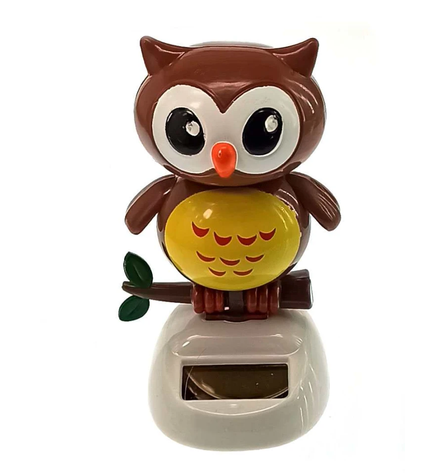 Сова танцующая на солнечной батарее темно коричневая (Flip Flap) (10.5×6×6 см)