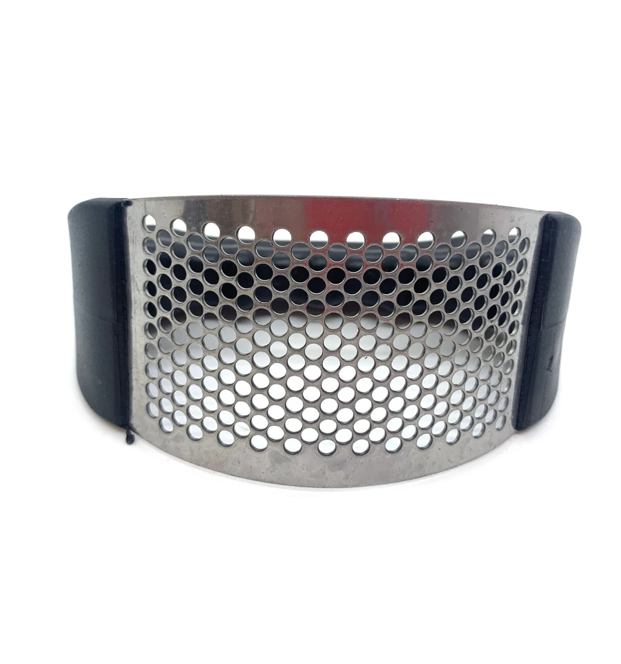 Металлическая сетка нашего пресса гарантирует эффективное измельчение чеснока, создавая мелкую и однородную массу. Площадь металлической пластины составляет 80х55 мм, что позволяет обработать достаточное количество чеснока за один раз.