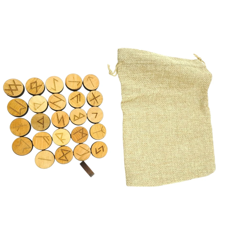 Руны «Скандинавские» круглые, светлые, 25 рун (d-2.3 см, h-0.7 см) с мешочком, массив дерева