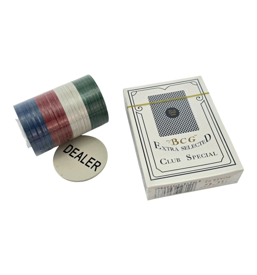 Комплектация: фишки 40 шт + колода 54 карты + жетон Dealer 1 шт