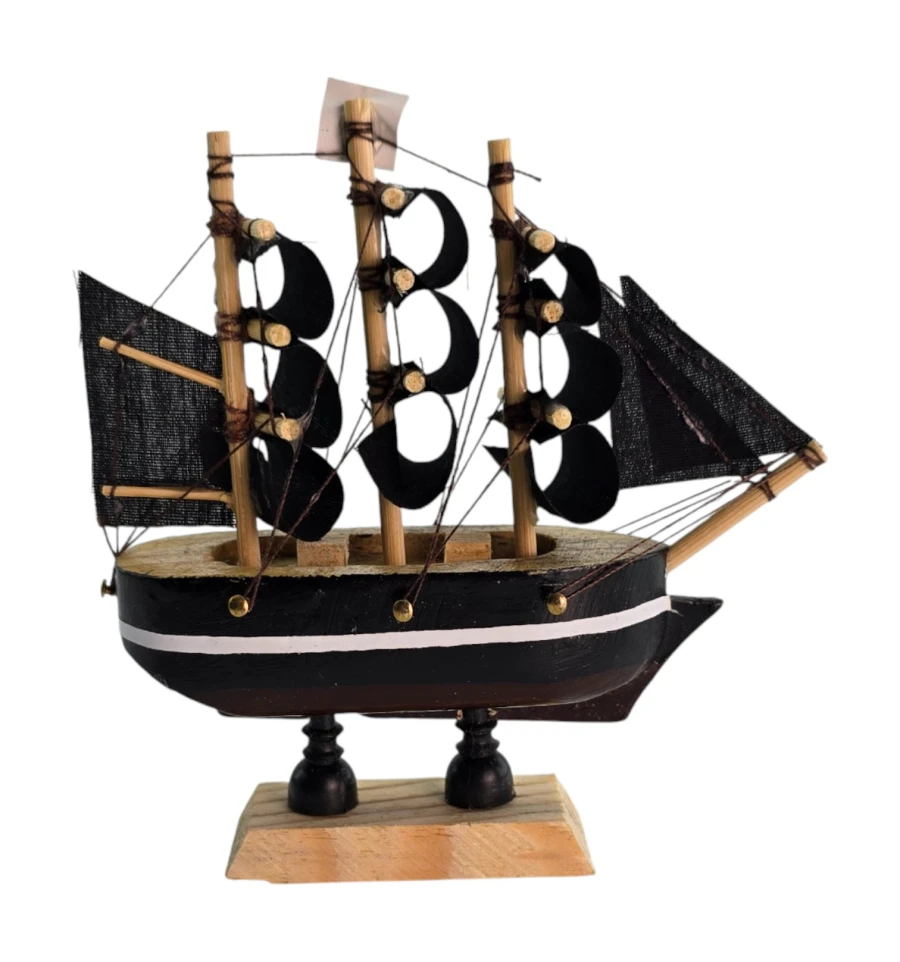 Стильный сувенир в морском стиле: компактный пиратский парусник с чёрными парусами и флагом «Джолли Роджер». Модель станет ярким акцентом на рабочем столе, полке, в витрине магазина или барбершопа, дополнит декор квартиры, офиса или тематической фотозоны. Отличный подарок коллекционерам, морякам, путешественникам и всем, кто любит морскую романтику и легенды о пиратах.