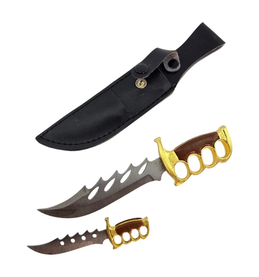 Размер: чехол 16,5 х 3,6 х 0,7 см; нож 15,2 х 3,5 х 1,2 см; нож 9,2 х 2,2 х 0,7 см