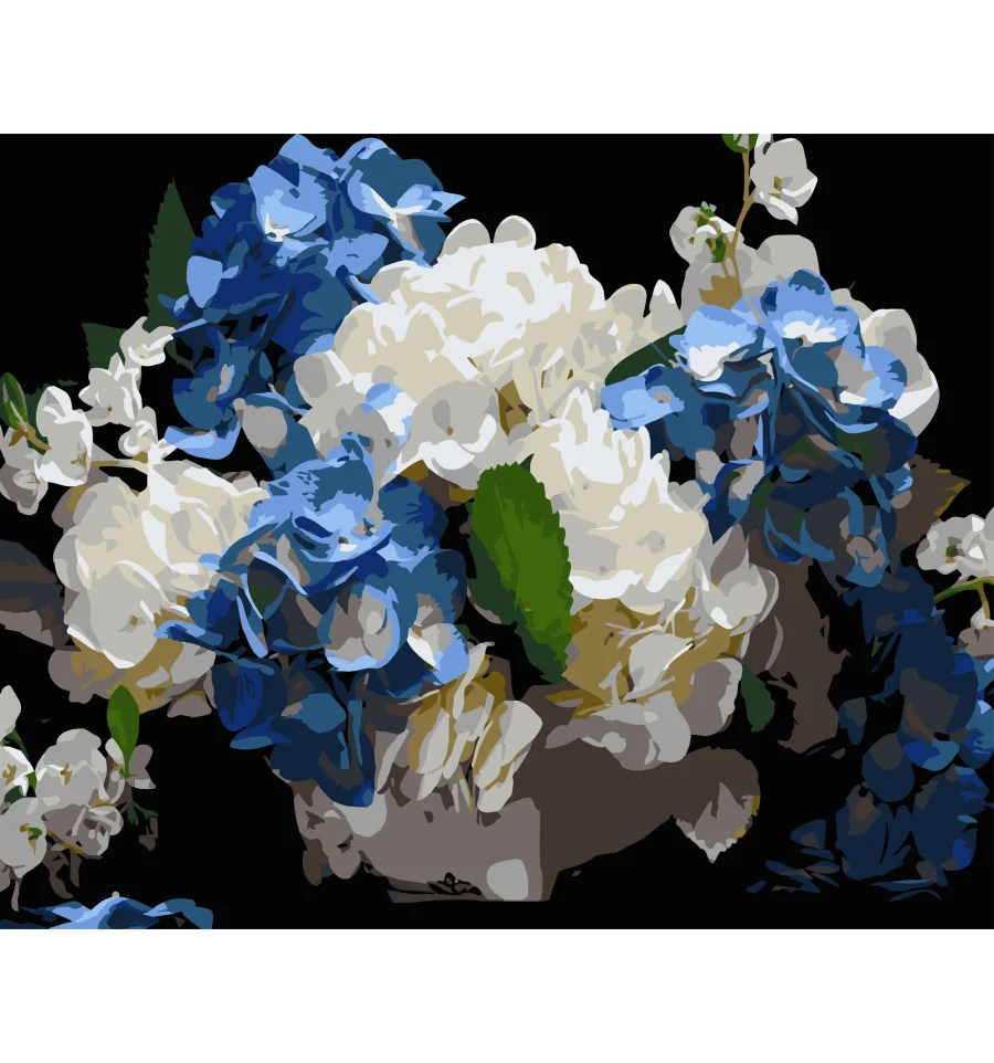 Картина по номерам Голубовато-белые гортензии на черном фоне 40Х50 (AH1247)