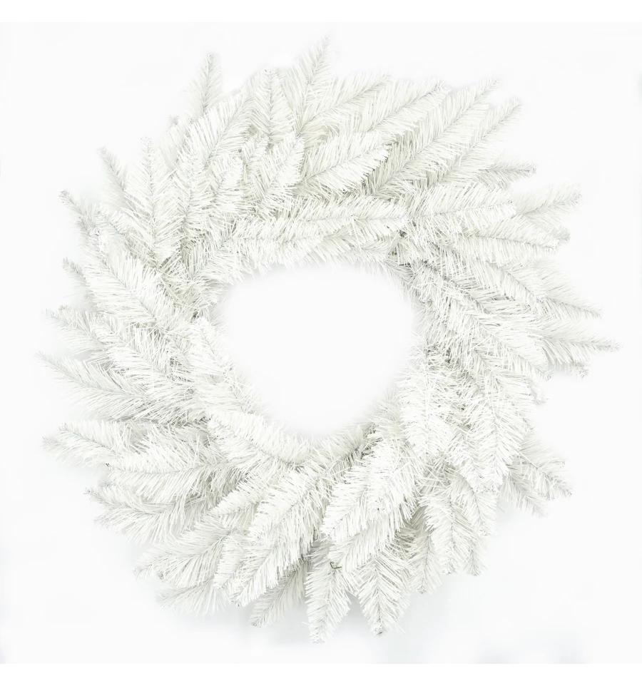 Пышный венок – традиционный подвесной декор для входных дверей дома и офиса в период новогодних праздников. Рождественский венок можно украшать зимними ягодами, веточками, пуансеттией, елочными шарами и другим декором. Все используемые материалы экологически чистые, имеют противопожарные свойства. Высокое качество материала позволяет изделию быть не только оригинальным и красивым, а еще и долговечным. Материал: ПВХ плёнка белого цвета, с добавлением серебряной металлизированной пленки, проволока. Ширина хвои — 8,5 см. Диаметр: 70 см.