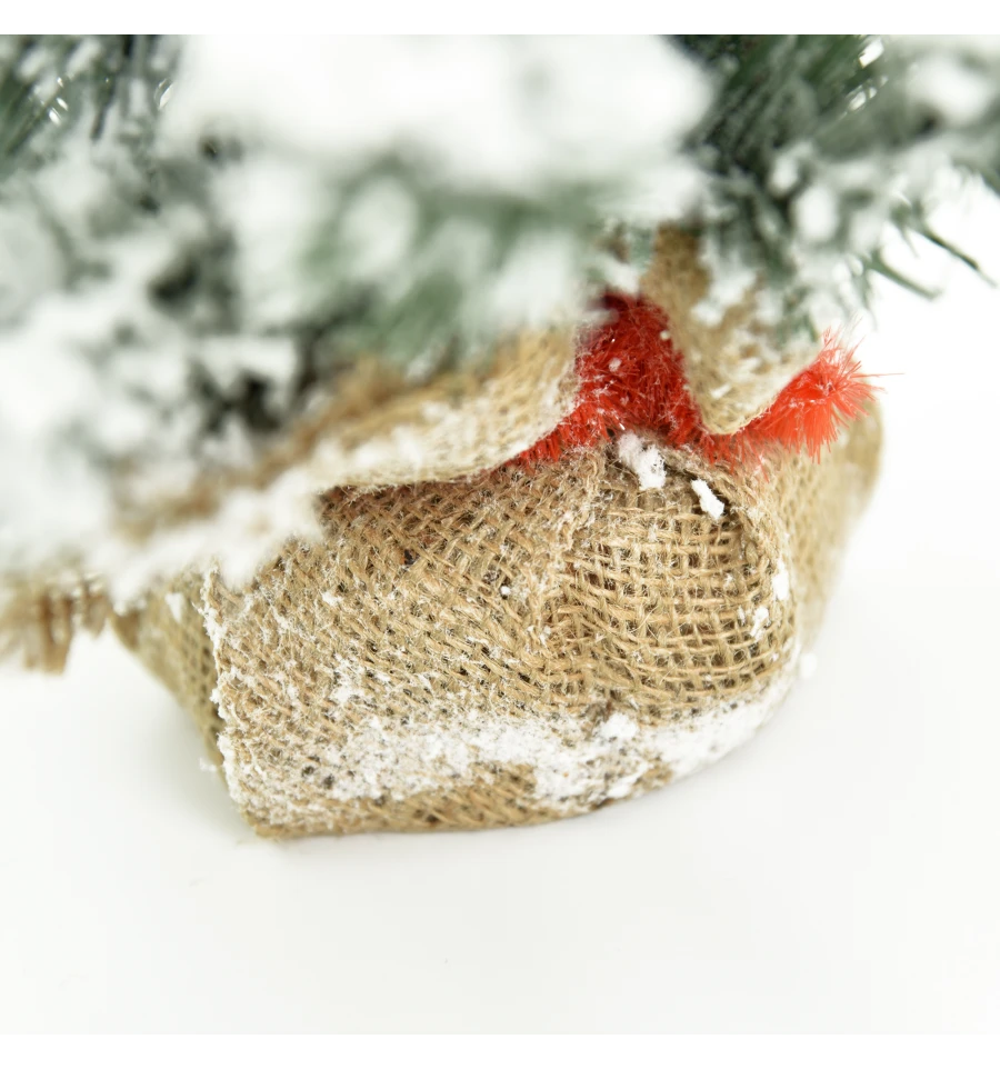 Искусственная маленькая заснеженная ель – отличный декор для помещения в период новогодних праздников, который можно использовать, украшая множество поверхностей в доме, офисе, в торговых центрах. Поставьте такую ель на столе, полке, тумбочке, на прилавке магазина, в прикассовой зоне – и праздничное настроение окружающим будет гарантировано. Компактность и качественное исполнение данного украшения – это и есть его главные преимущества. Материал: ПВХ пленка шириной 6 см; проволока; деревянный пенек, обтянутый мешковиной. Высота: 45 см. Диаметр нижнего ряда: 32 см. Габариты: 0,45м.