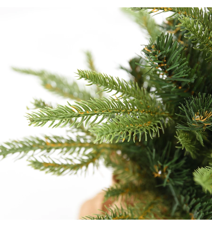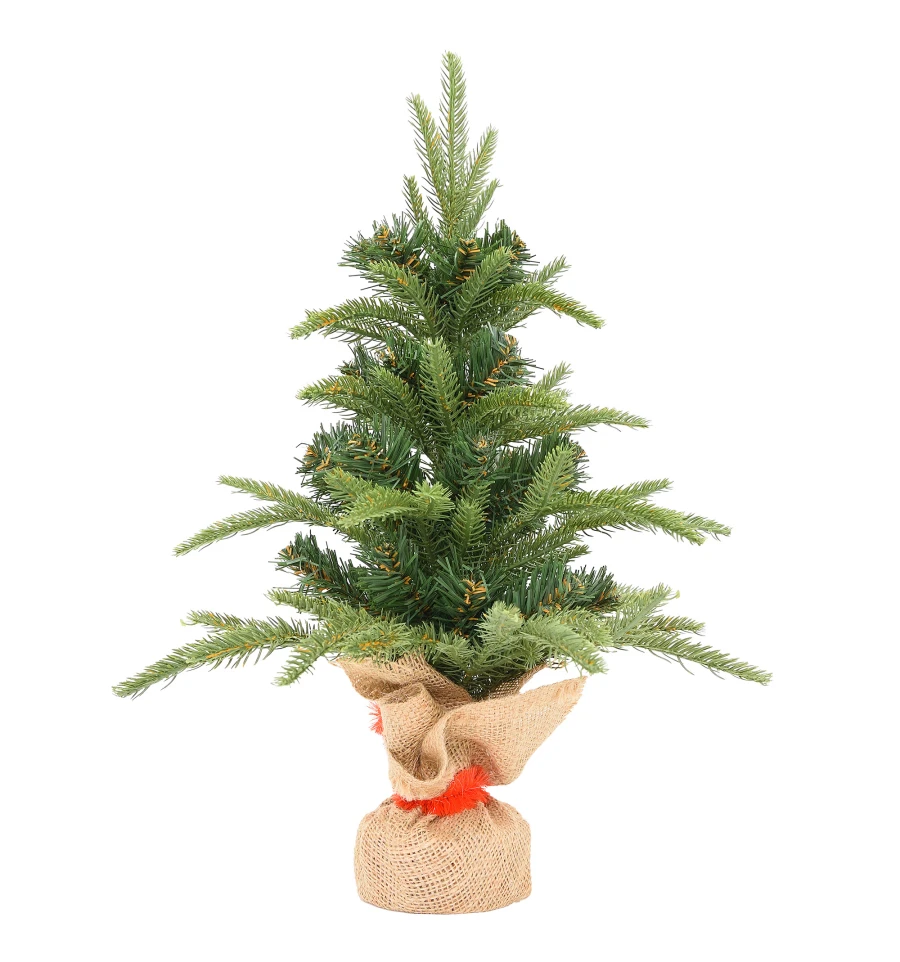Искусственная маленькая ель – отличный декор для помещения в период новогодних праздников, который можно использовать, украшая множество поверхностей в доме, офисе, в торговых центрах. Поставьте такую ель на столе, полке, тумбочке, на прилавке магазина, в прикассовой зоне – и праздничное настроение окружающим будет гарантировано. Компактность и качественное исполнение данного украшения – это и есть его главные преимущества. Материал: ПВХ пленка шириной 6 см; проволока; деревянный пенек, обтянутый мешковиной. Высота: 45 см. Диаметр нижнего ряда: 44 см. Габариты: 0,45м.