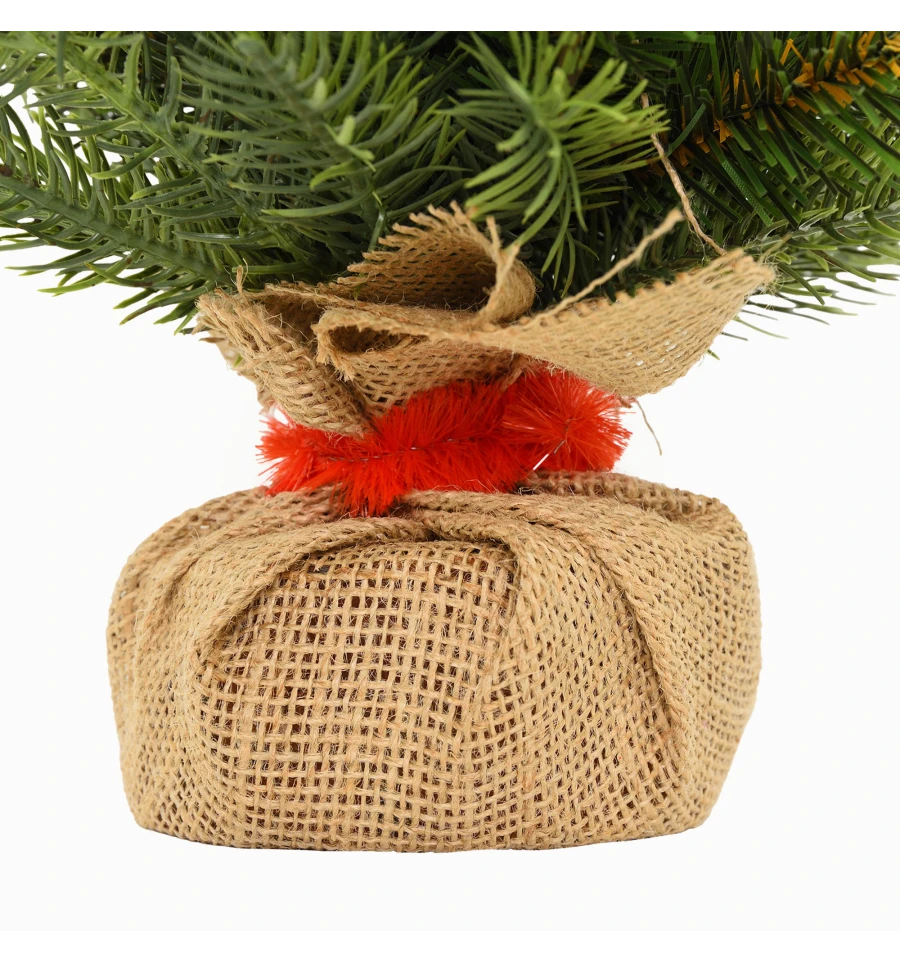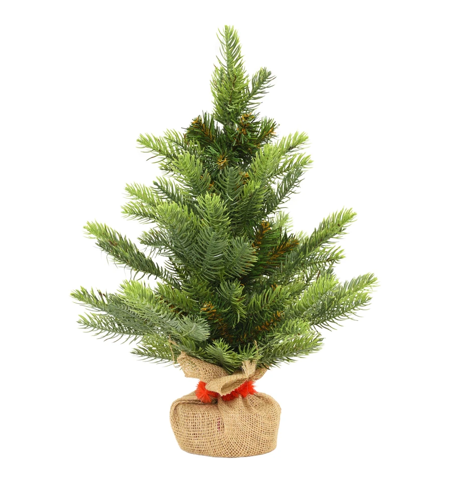 Искусственная маленькая ель – отличный декор для помещения в период новогодних праздников, который можно использовать, украшая множество поверхностей в доме, офисе, в торговых центрах. Поставьте такую ель на столе, полке, тумбочке, на прилавке магазина, в прикассовой зоне – и праздничное настроение окружающим будет гарантировано. Компактность и качественное исполнение данного украшения – это и есть его главные преимущества. Материал: ПВХ пленка шириной 6 см; проволока; деревянный пенек, обтянутый мешковиной. Высота: 45 см. Диаметр нижнего ряда: 42 см. Габариты: 0,45м.