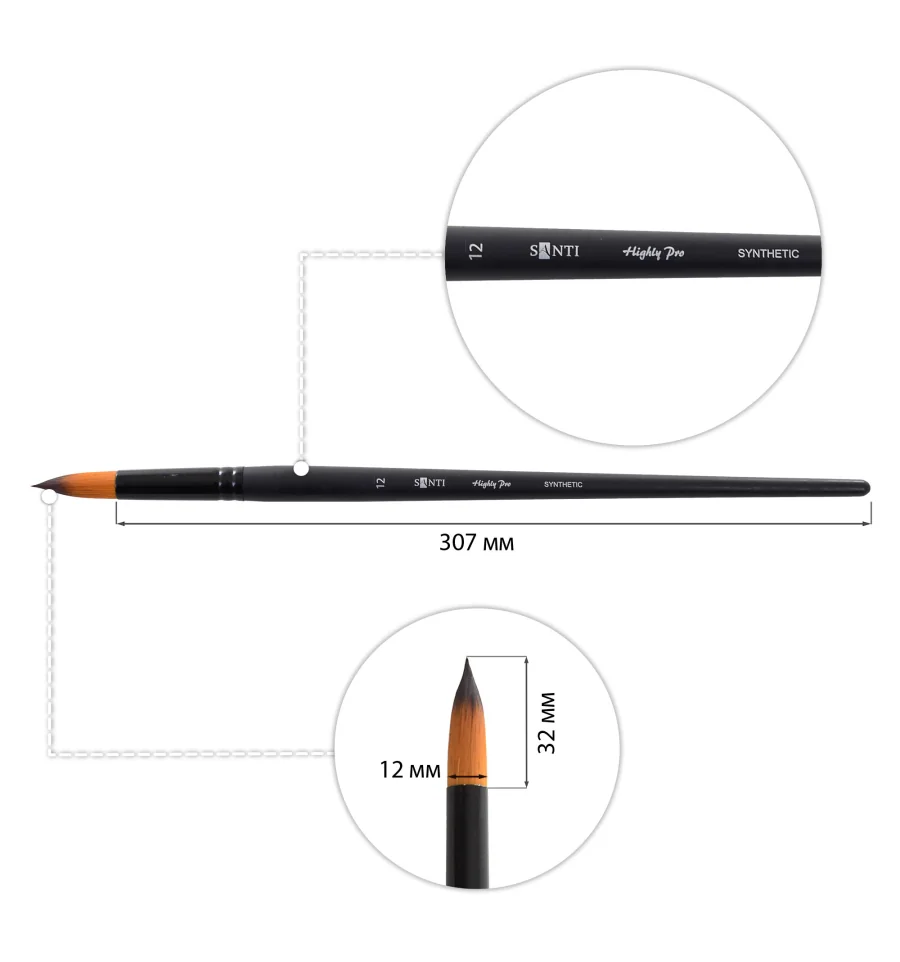Кисть художественная синтетика "Santi Highly Pro", длинная ручка, круглая, №12