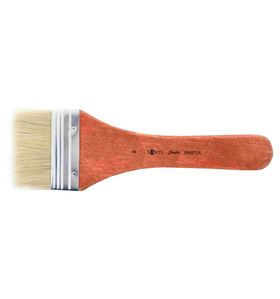 Кисти из щетины "Santi Studio" - прекрасный выбор кистей для масла и акрила. Благодаря густоте и длине волоса - удерживают большое количество краски. Флейц - широкая плоская кисть, предназначенная для нанесения широких слоев краски одним мазком и для свободной живописи заливками. Всего несколькими движениями позволяет создавать большие по площади фактуры.