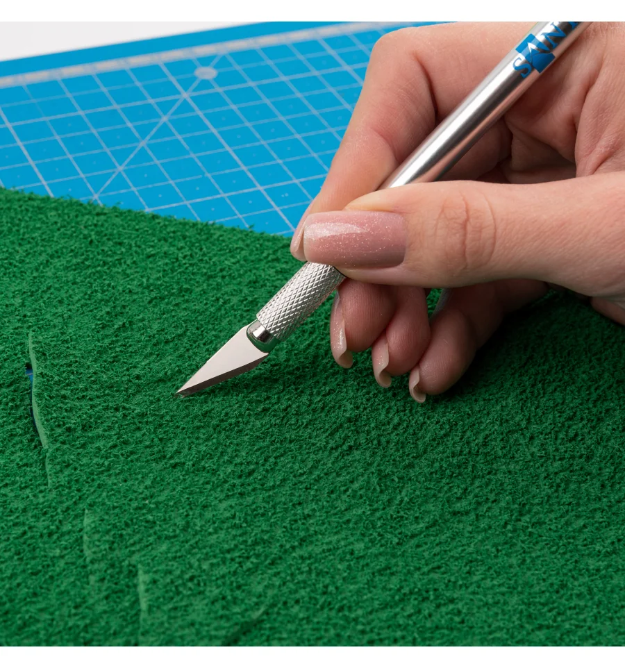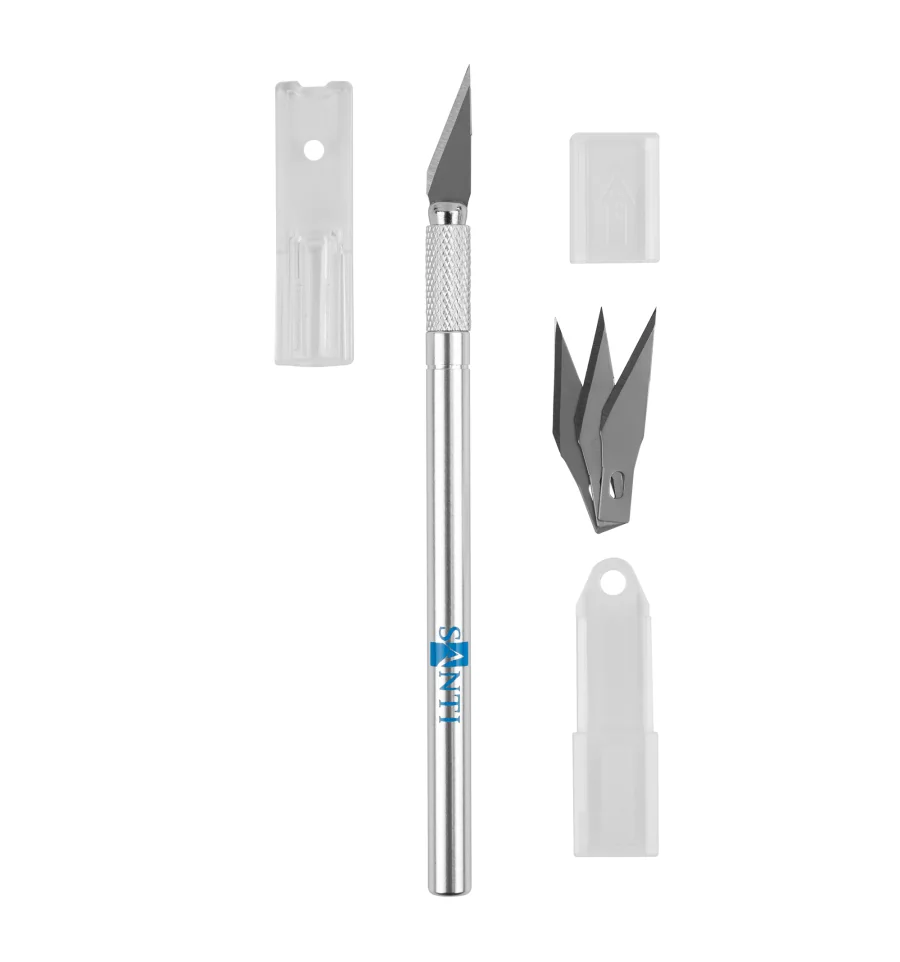 Профессиональный макетный нож для фигурной резки. Стальной со сменными лезвиями и цанговым зажимом, универсальный инструмент для различных видов дизайнерских работ. Используется в таких техниках как скрапбукинг, декупаж, киригами. Очень удобный для вырезания сложных элементов и быстрой смены лезвий. Применяется для фигурной резки различных материалов, таких как фетр, бумага, картон, пластик, кожа, декупажная бумага, веллум, рисовая бумага и другие материалы. Использование ножей на макетных ковриках позволяет лезвию ножа оставаться острым гораздо дольше. Лезвие сменное и выдерживает до 15 000 циклов резки.