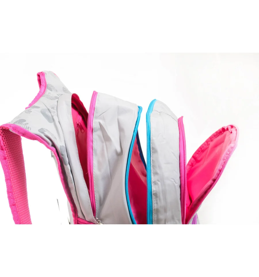 Уплотненная спинка, комфортные лямки, три отделения, дополнительный карман на фронтальной панели, два боковых кармана, удобная ручка, яркий дизайн, светоотражающие элементы.
