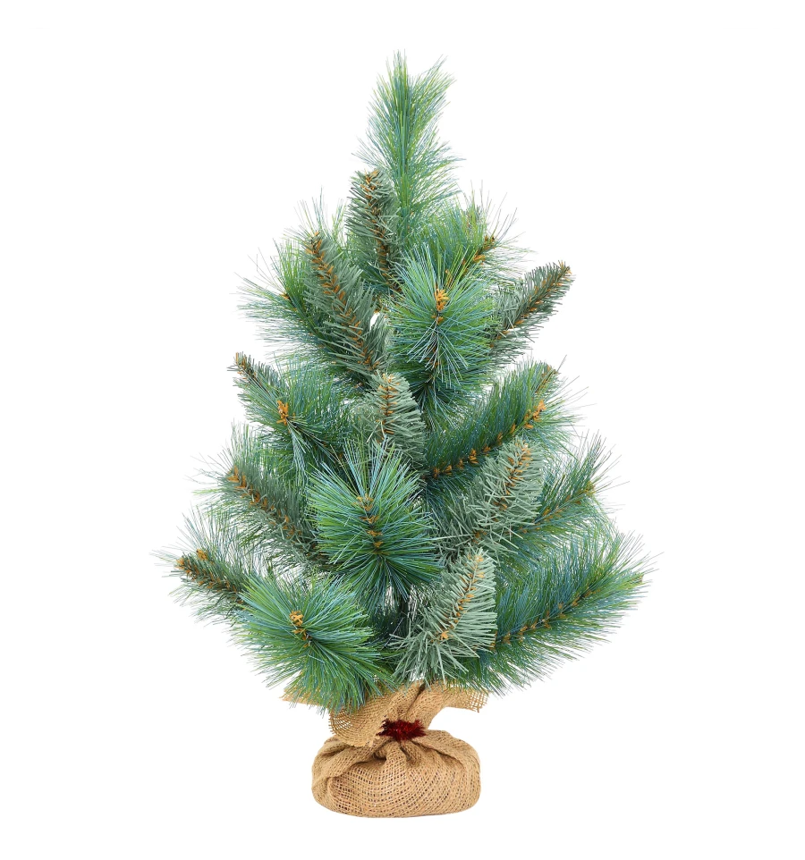 Искусственная маленькая сосна – отличный декор для помещения в период новогодних праздников, который можно использовать, украшая множество поверхностей в доме, офисе, в торговых центрах. Поставьте такую ель на столе, полке, тумбочке, на прилавке магазина, в прикассовой зоне – и праздничное настроение окружающим будет гарантировано. Компактность и качественное исполнение данного украшения – это и есть его главные преимущества. Материал: ПВХ пленка шириной 8,5 см, 10 см; проволока; деревянный пенек, обтянутый мешковиной. Высота: 60 см. Диаметр нижнего ряда: 40 см. Габариты: 0,60 м.