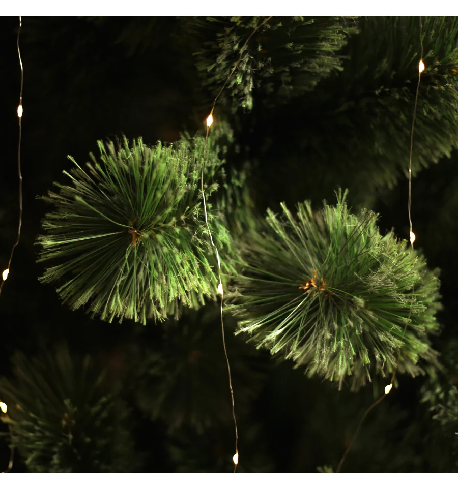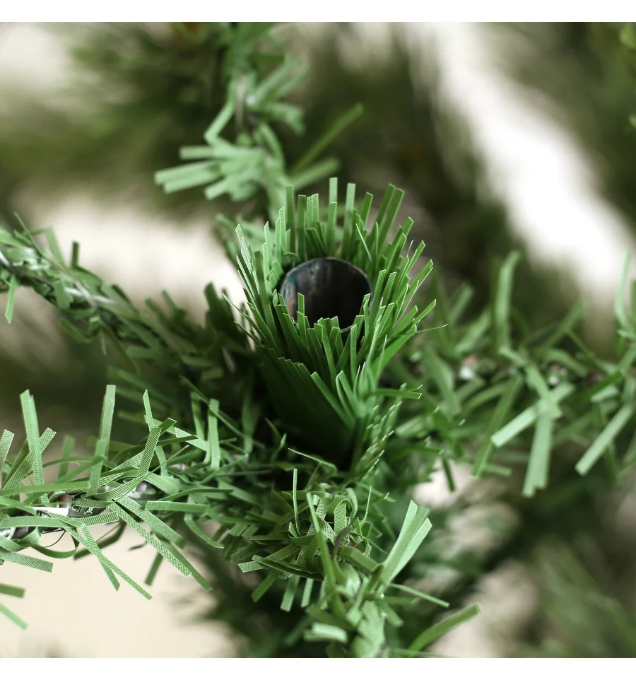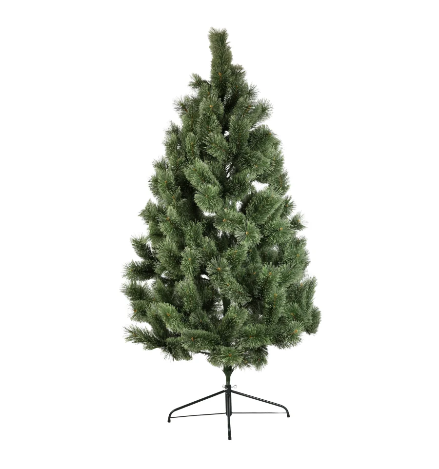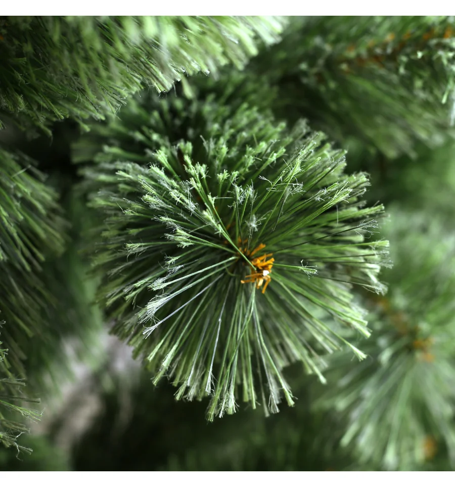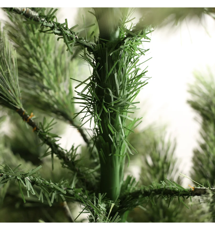 Искусственная сосна подобна натуральному дереву, растущему в живой природе. Все используемые материалы экологически чистые, имеют противопожарные свойства. Большим плюсом искусственной сосны является её долговечность, а сборка конструкции не отнимет много времени. Красивое и пышное новогоднее дерево будет ежегодно наполнять дом радостью и благополучием в рождественский период. Материал: ПВХ пленка шириной 12 см; металл; проволока. Высота: 180 см. Диаметр нижнего ряда: 126 см. Ствол состоит из двух частей. Подставка сосны — это металлическая крестовина с болтами, закрепляющими ствол. Габариты: 1,80 м.