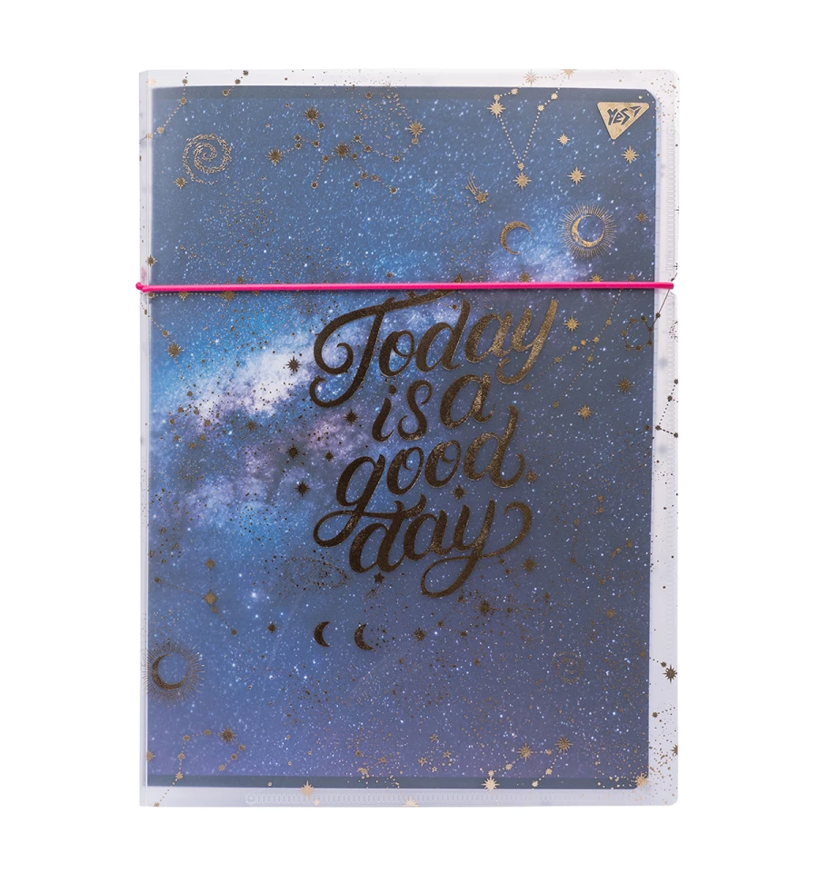 Тетрадь А4 формата в прозрачной пластиковой папке от торговой марки YES имеет съемный внутренний блок в клетку с креплением на скобах и гибкую обложку-папку с фиксирующей резинкой, которая защищает тетрадь от загрязнения и деформации.