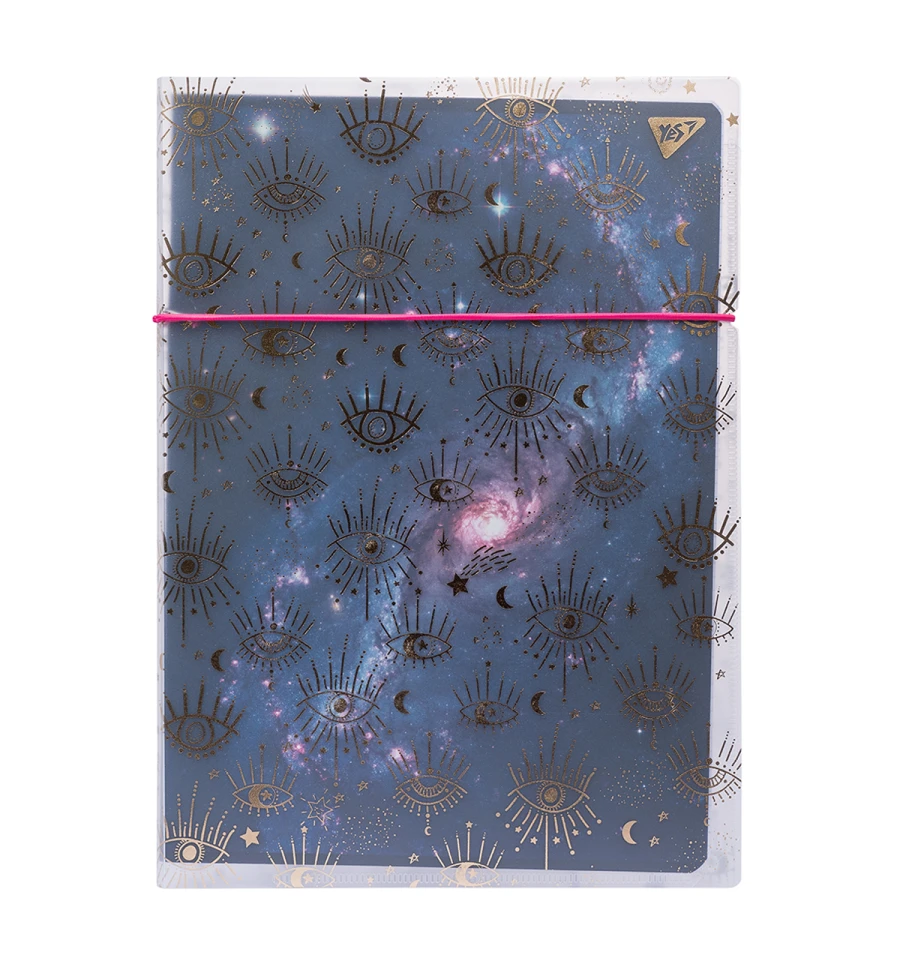 Тетрадь А4 формата в прозрачной пластиковой папке от торговой марки YES имеет съемный внутренний блок в клетку с креплением на скобах и гибкую обложку-папку с фиксирующей резинкой, которая защищает тетрадь от загрязнения и деформации.