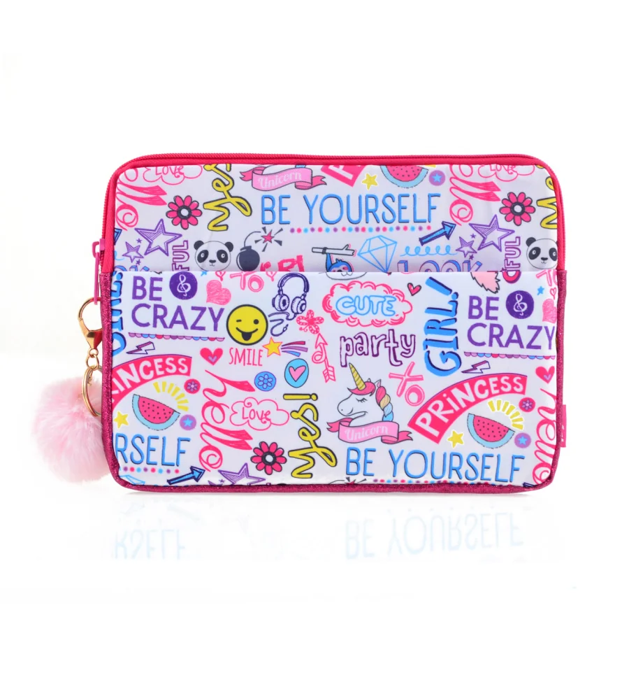 Как сохранить первозданный внешний вид любимого гаджета? Эта задача легко решается с помощью чехла для планшета от торговой марки YES. Чехол выполнен из плотной ткани с дополнительным уплотнением его стенок вспененным полипропиленом. Это защитит поверхность вашего планшета от мелких повреждений в виде царапин, сколов и т. д. Чехол имеет дополнительный карман на молнии, где можно разместить зарядное устройство, наушники, флешку и др. Мерцающая ткань оборотной стороны чехла и съемный брелок-помпон придают чехлу изысканный вид. Подходит для планшетов с диагональю 11 дюймов.Материал: полиэстер