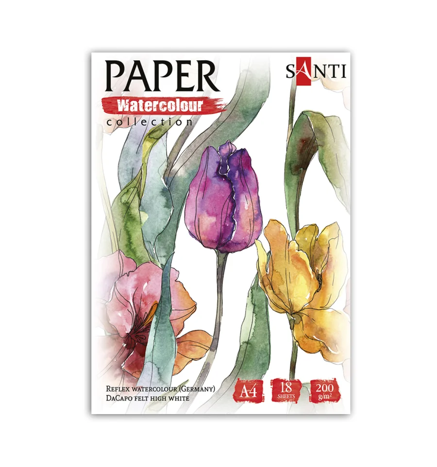 Набор акварельной бумаги "Flowers" от ТМ SANTI — воплощение совершенства для художников, ценящих утонченность деталей и высокое качество. Коллекция "Paper Watercolor Collection" станет идеальным выбором для тех, кто стремится создавать яркие и насыщенные акварельные шедевры. Эта бумага специально разработана для акварельных техник и обеспечивает идеальную поверхность для создания выразительных картин. Белая поверхность и нежная текстура пробуждают воображение и вдохновляют на творческие эксперименты. Благодаря своей плотности бумага отлично впитывает воду и краску, оставаясь устойчивой к деформации и размоканию. Это позволяет создавать многослойные композиции и пробовать различные техники.