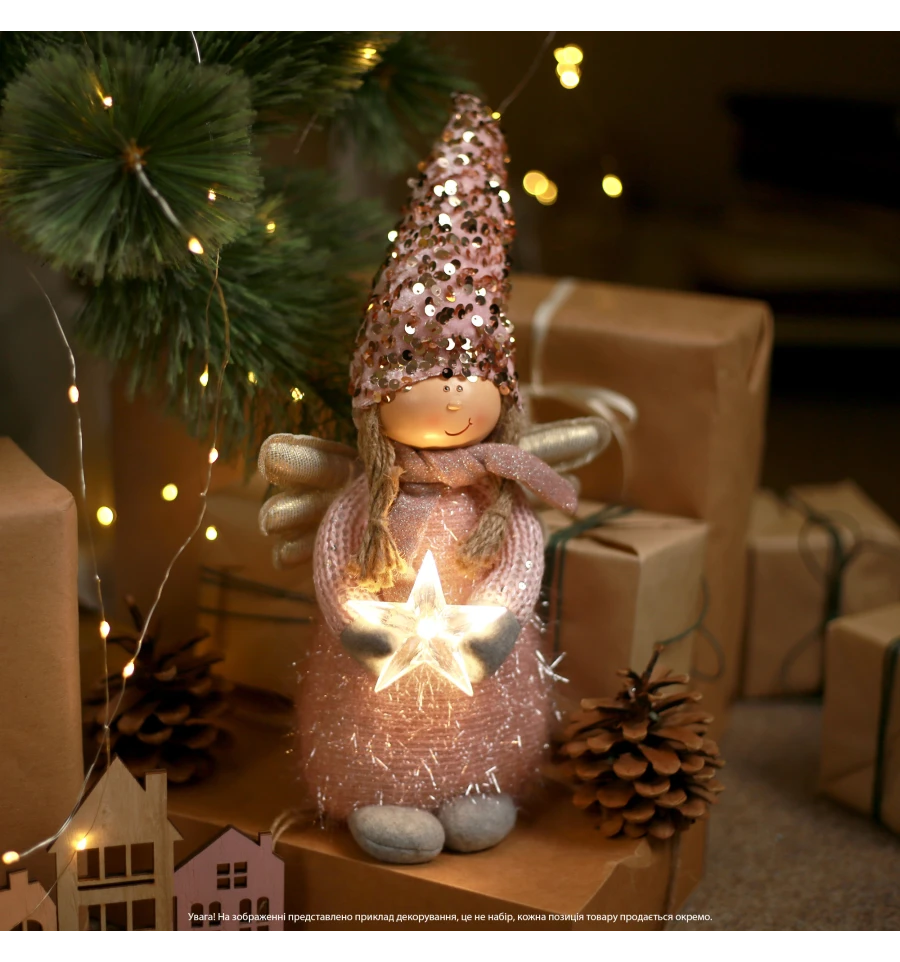 Мягкая игрушка Девочка Ангел с LED-подсветкой TM Novogod‘ko станет чудесным подарком для близких, друзей или коллег. Он будет радовать из года в год, становясь частью семейной рождественской традиции.