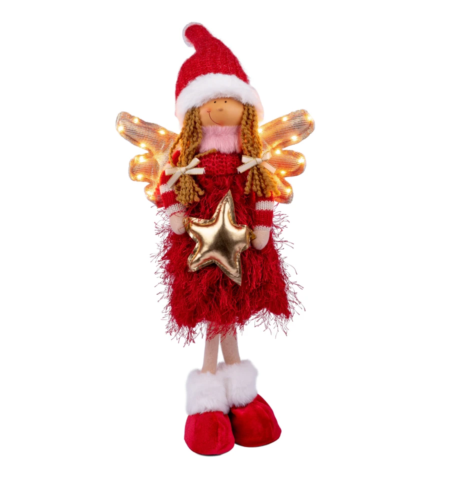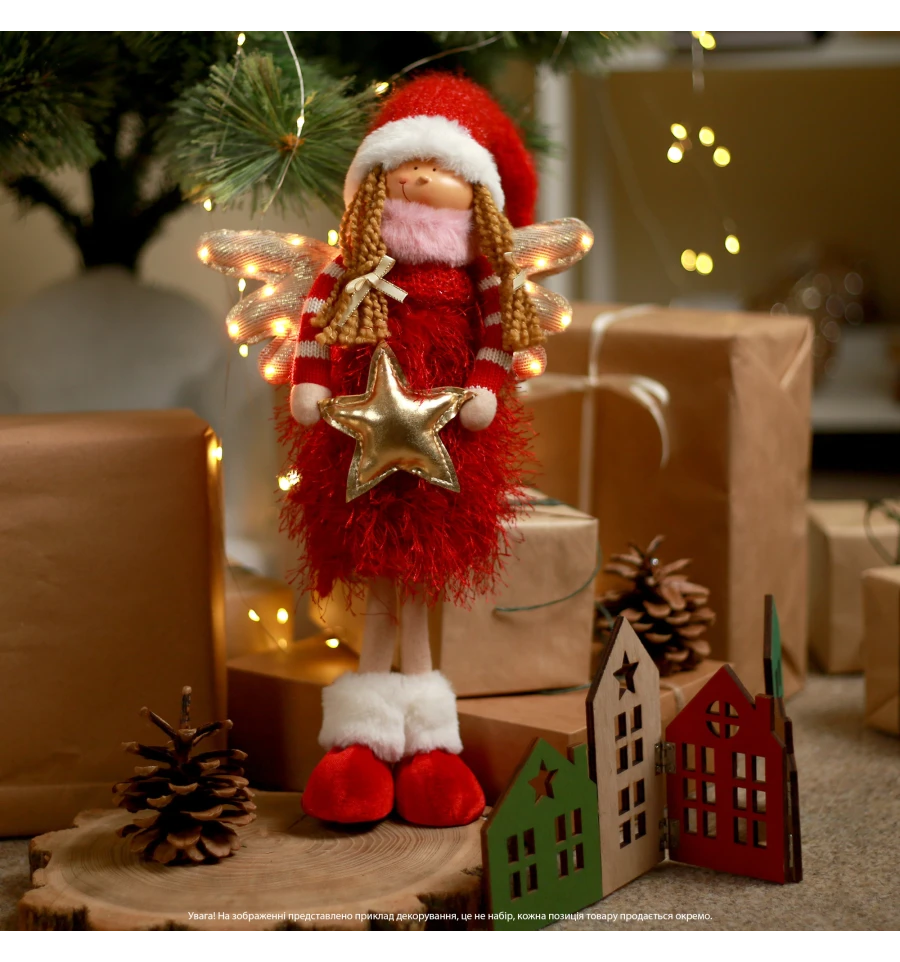 Мягкая игрушка Ангел девочка в красном с LED-подсветкой TM Novogod‘ko подарит вашему дому особую атмосферу волшебства и станет символом светлых желаний, душевного тепла и счастливых праздничных моментов!