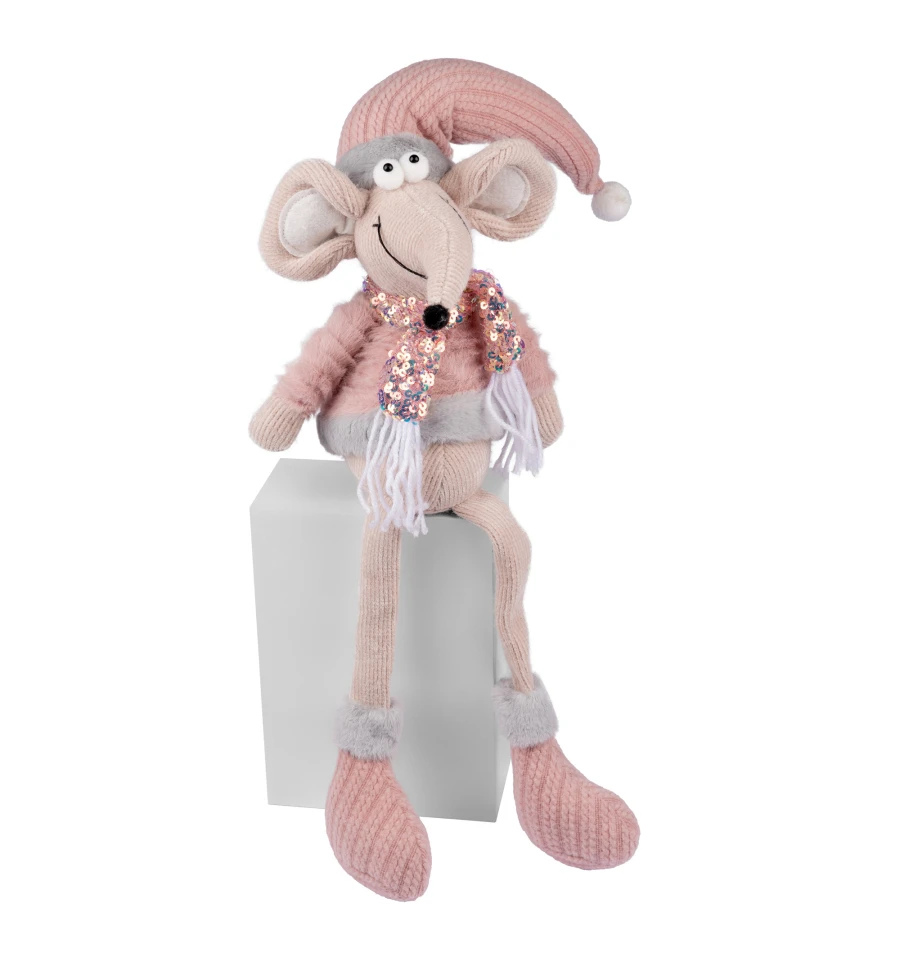 Новогодний Мышонок — это очаровательный и милый персонаж в розовом наряде и шапочке с помпоном, который моментально создаст атмосферу радости и праздника в вашем доме. Шикарный блестящий шарфик с мерцающими розовыми пайетками — это настоящая «изюминка» игрушки. Они красиво переливаются в свете гирлянд и свечей, добавляя мышонку праздничного блеска. Забавные ушки, дружелюбная мордашка делают игрушку особенно обаятельной, создавая праздничный образ, который понравится и детям, и взрослым.