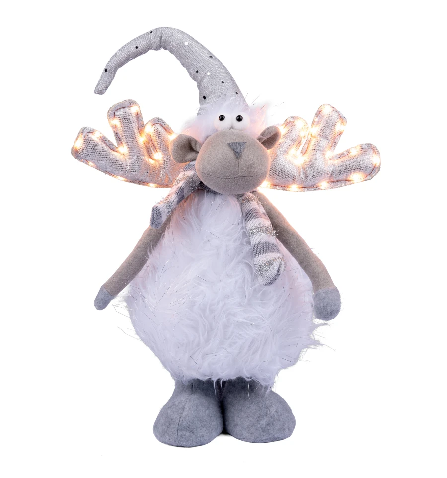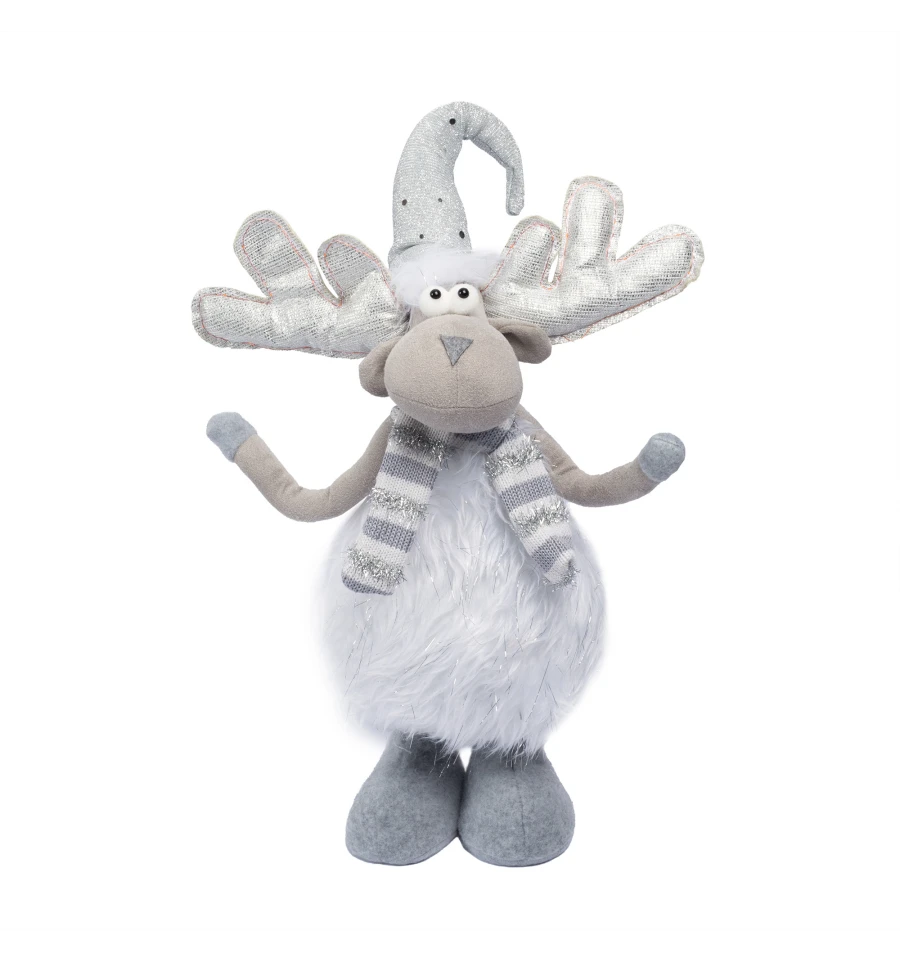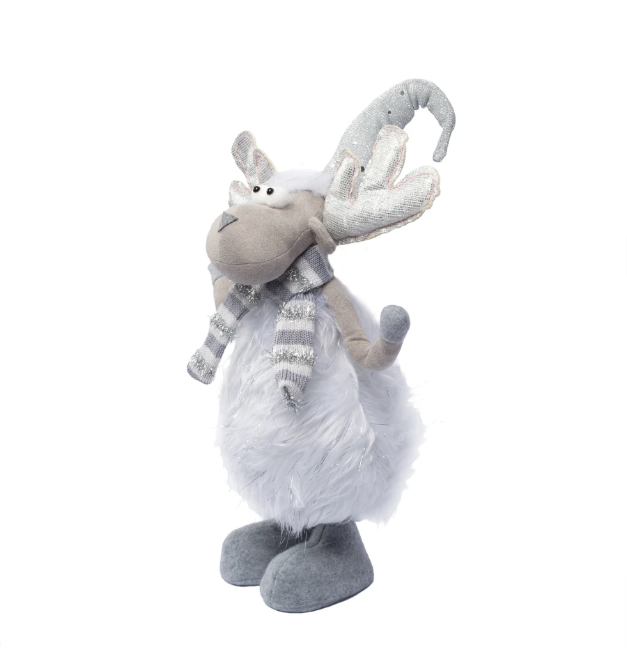 Олень издавна считается символом благородства, мужества и победы над злом. Он символизирует стремление к свету и способность преодолевать трудности — идеальные качества для праздничного декора, наполненного смыслом и атмосферой добра. Пушистое белое тело, серебристые рога и полосатый шарфик создают очень милый праздничный образ героя зимних историй, который понравится и детям, и взрослым.