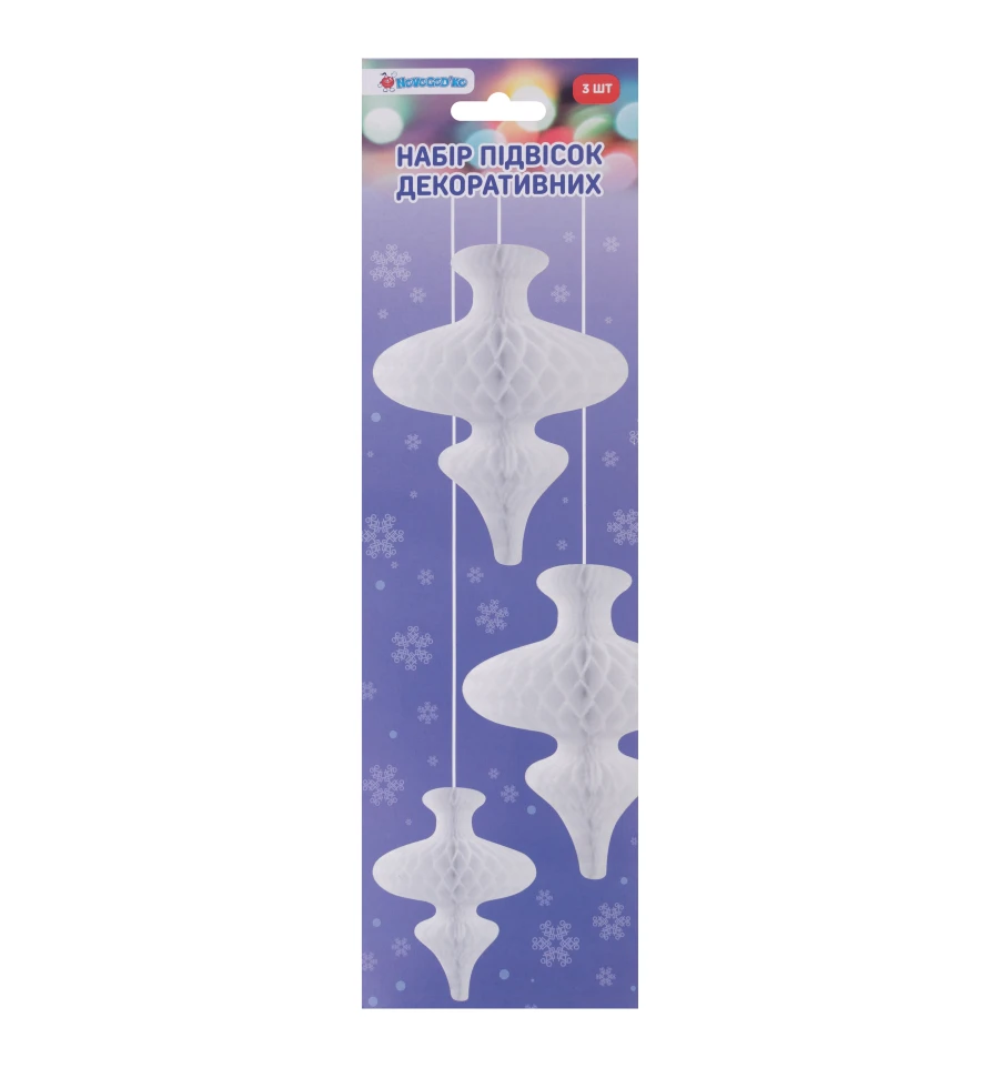 Подвеска-соты бум. 3D Novogod‘ko Сосульки, 3шт/наб (30см,20см,15см), белые
