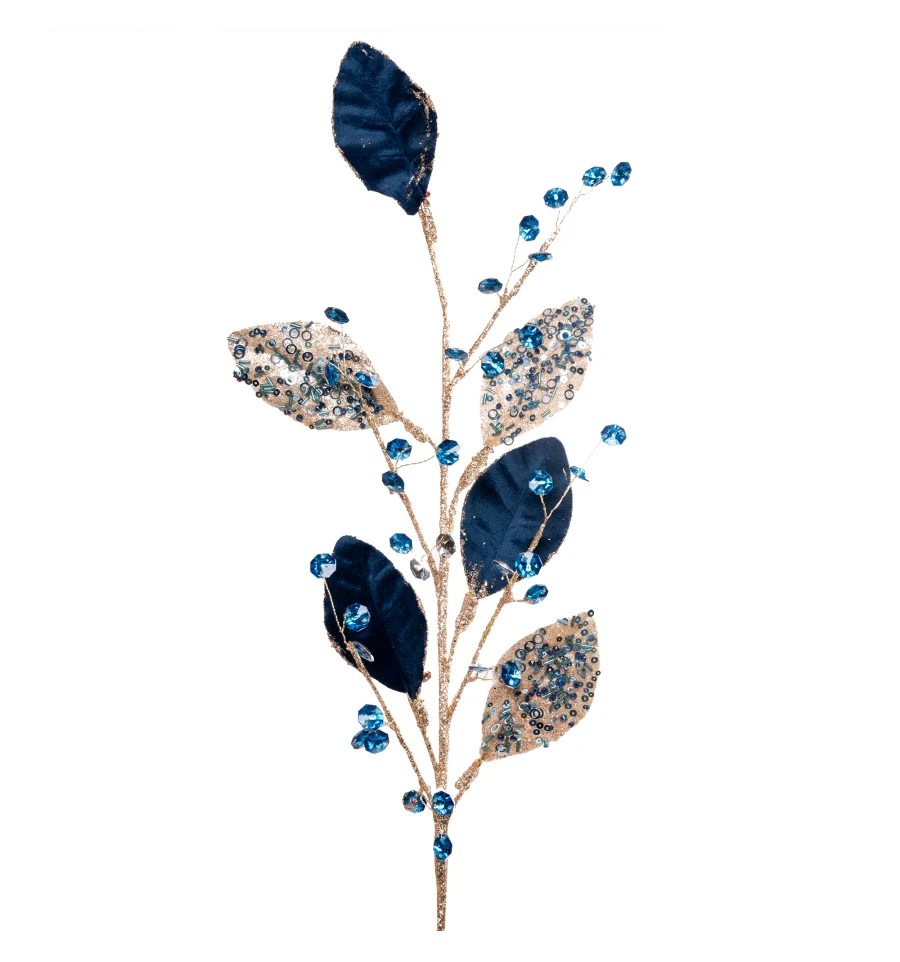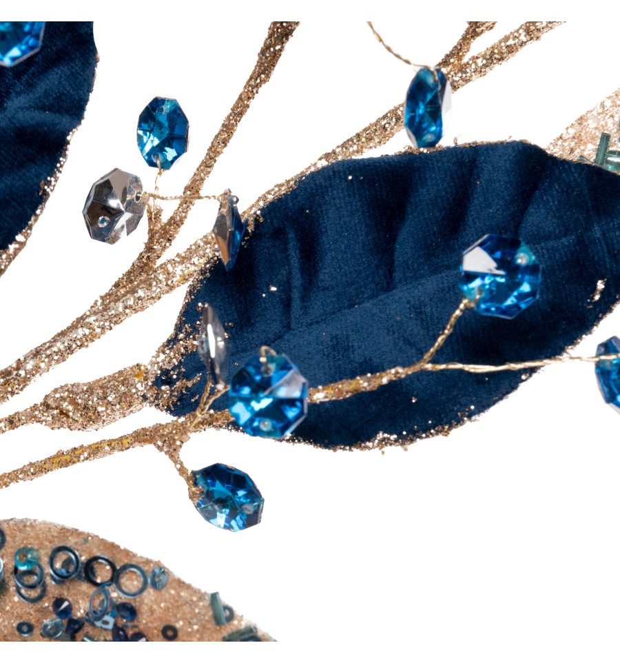 Ветка декоративная Yes!Fun Листья с кристаллами, голубая, 78 см
