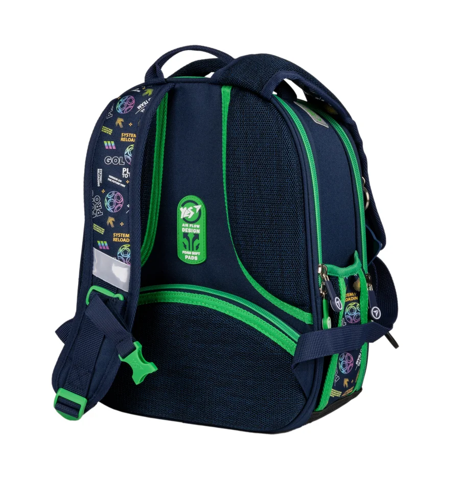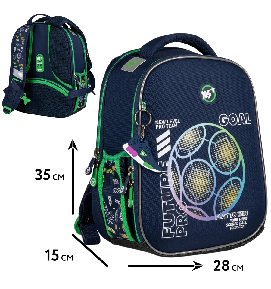 Дизайн футбольной тематики на школьном рюкзаке Yes H-100 Your Goal – это мощный заряд энергии, придающий уверенности его владельцу каждый школьный день!