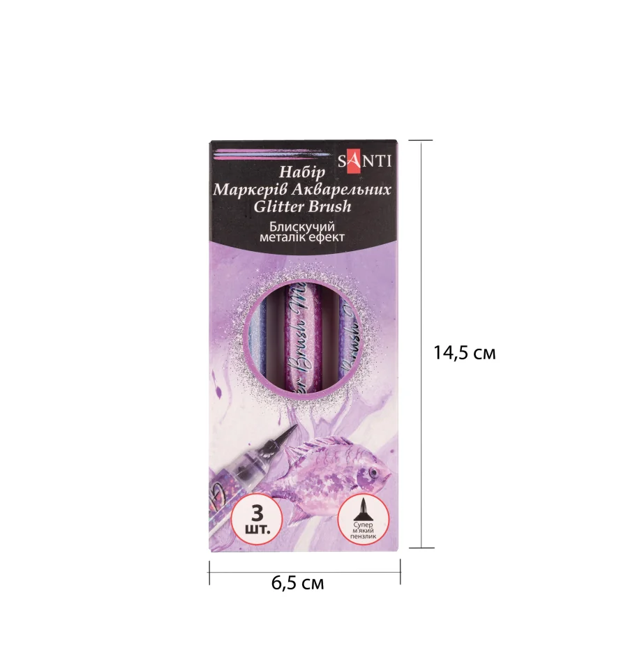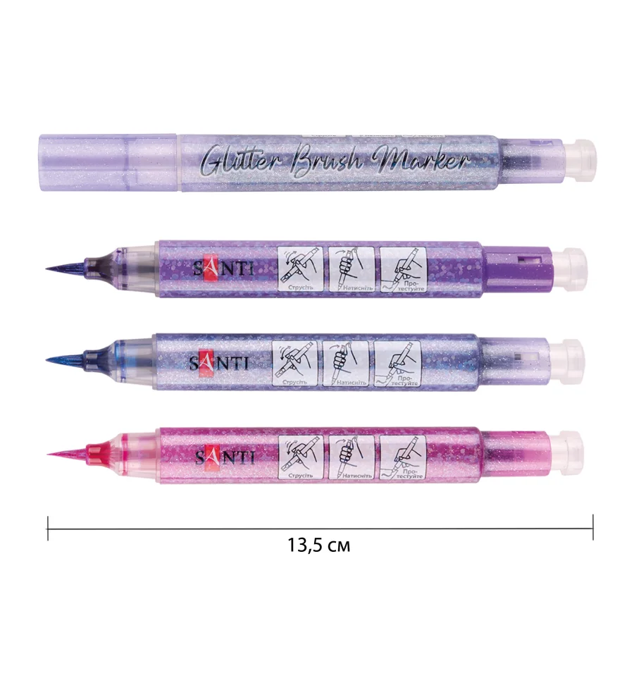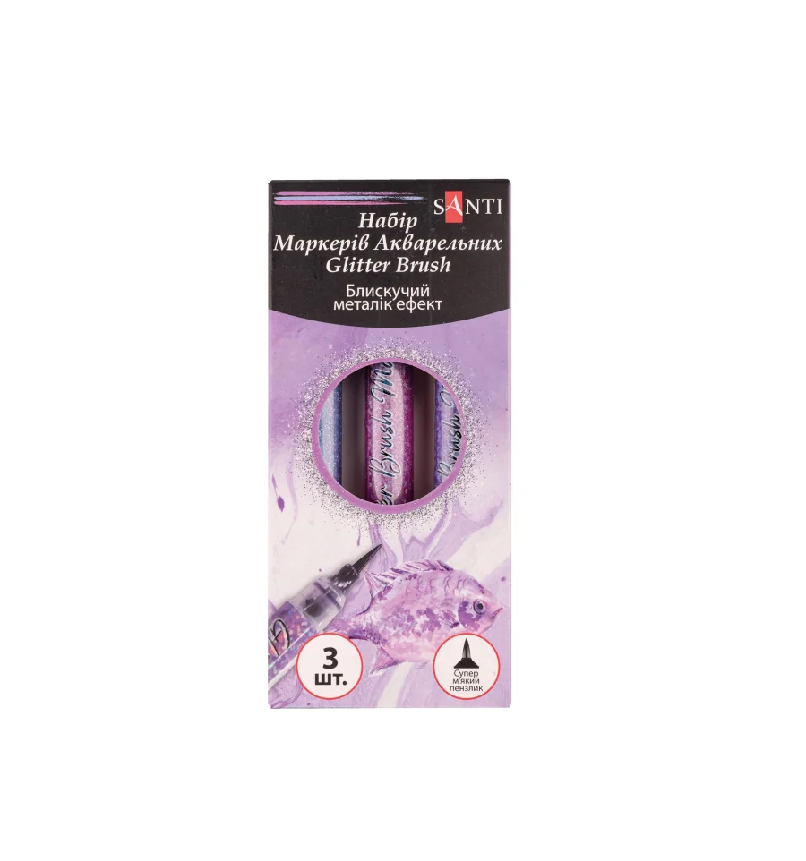 Набор маркеров акварельных SANTI Glitter Brush, оттенки фиолетового, 3 шт/уп.