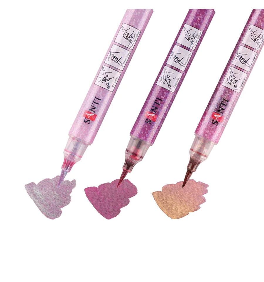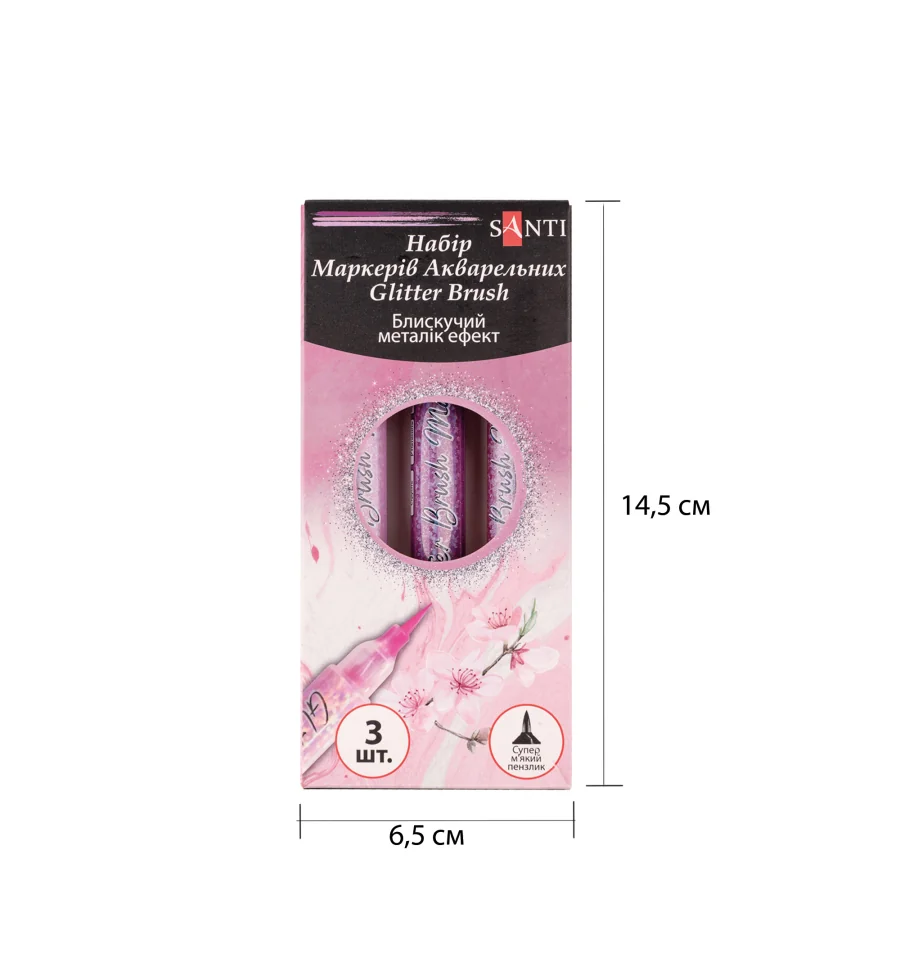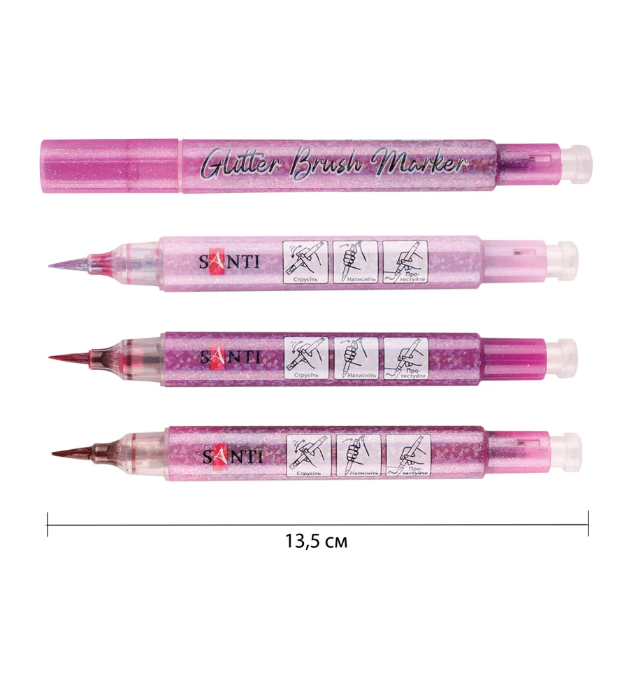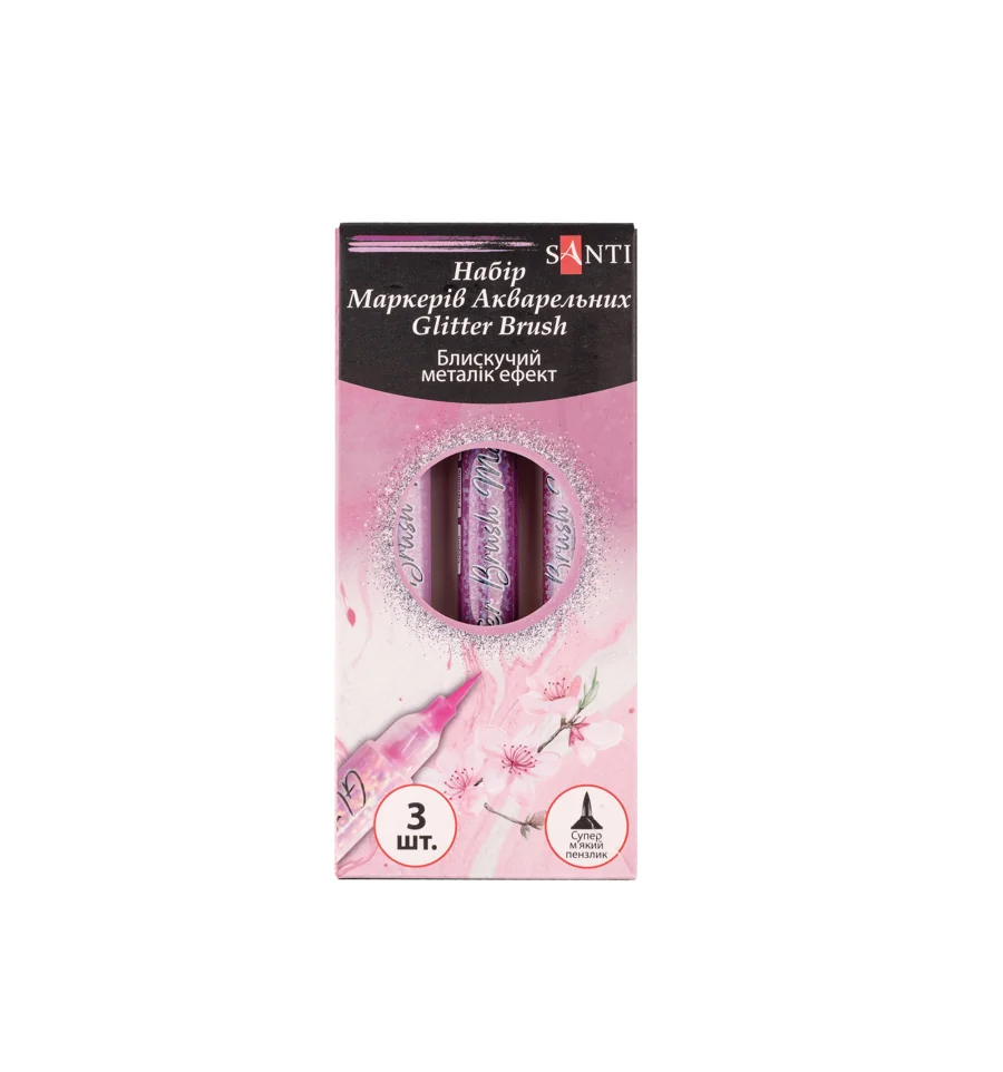 Набор маркеров акварельных SANTI Glitter Brush, оттенки розового, 3 шт/уп.