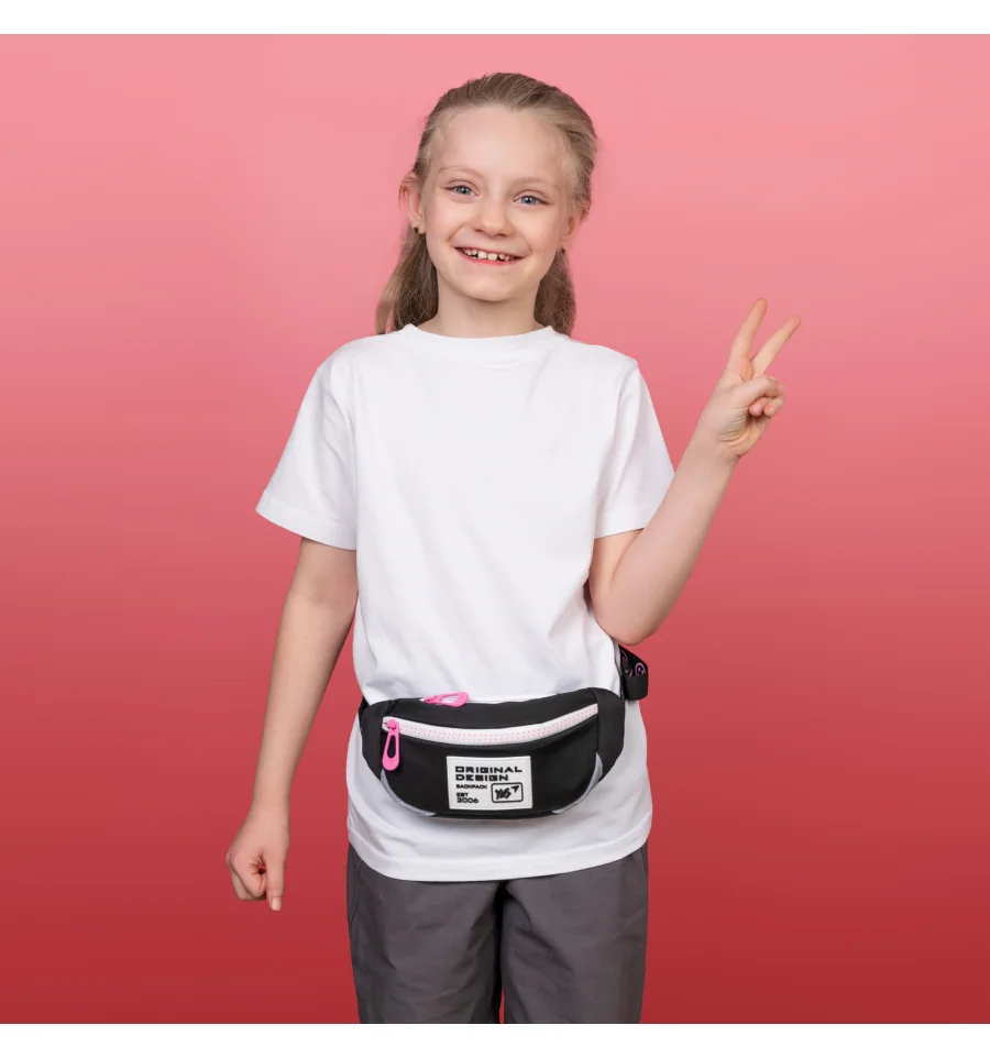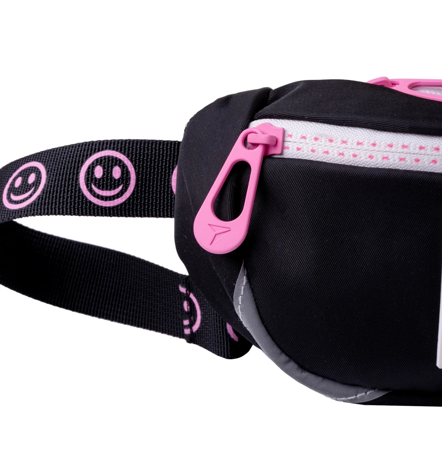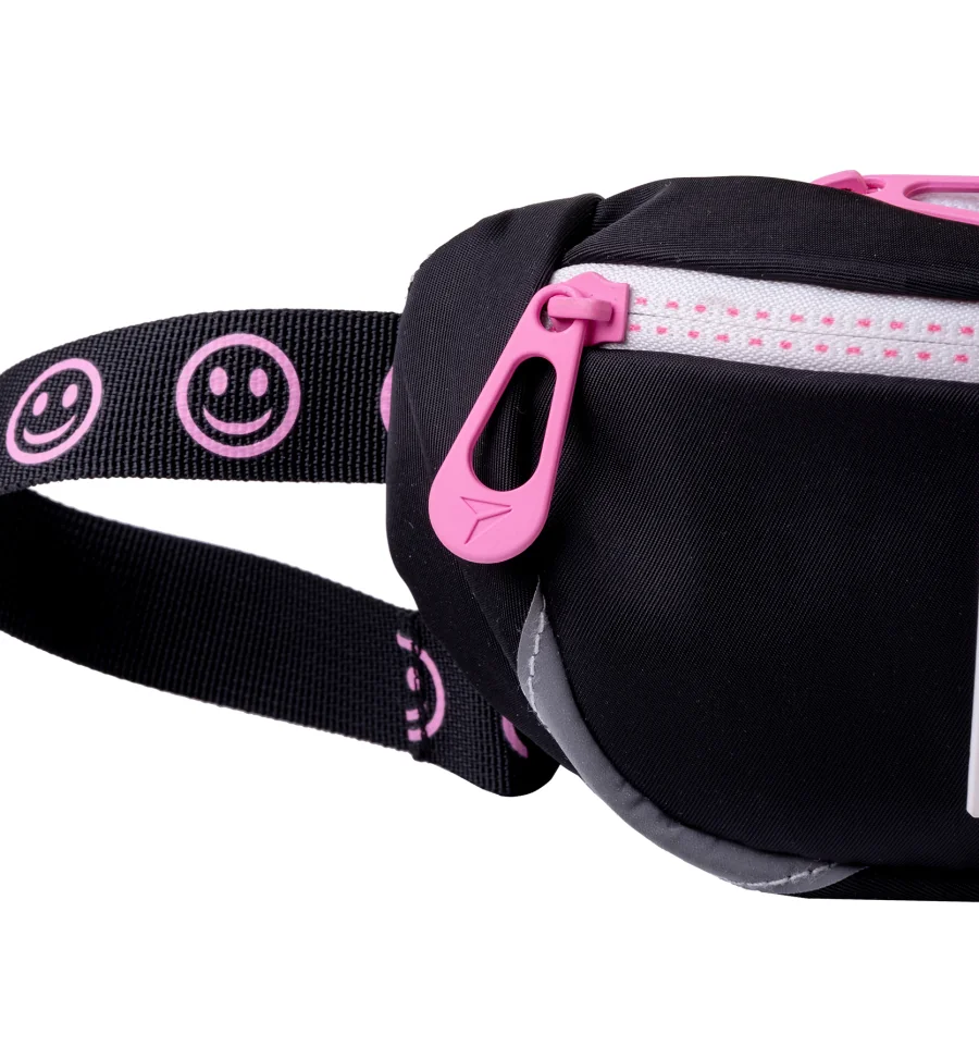 Сумка на пояс Yes I am Smiling SP-34 выполнена в чёрно-белом цвете с ярким акцентом - принтованным ремнем и фурнитурой в изысканном розовом цвете придаст уникальности вашему образу.
