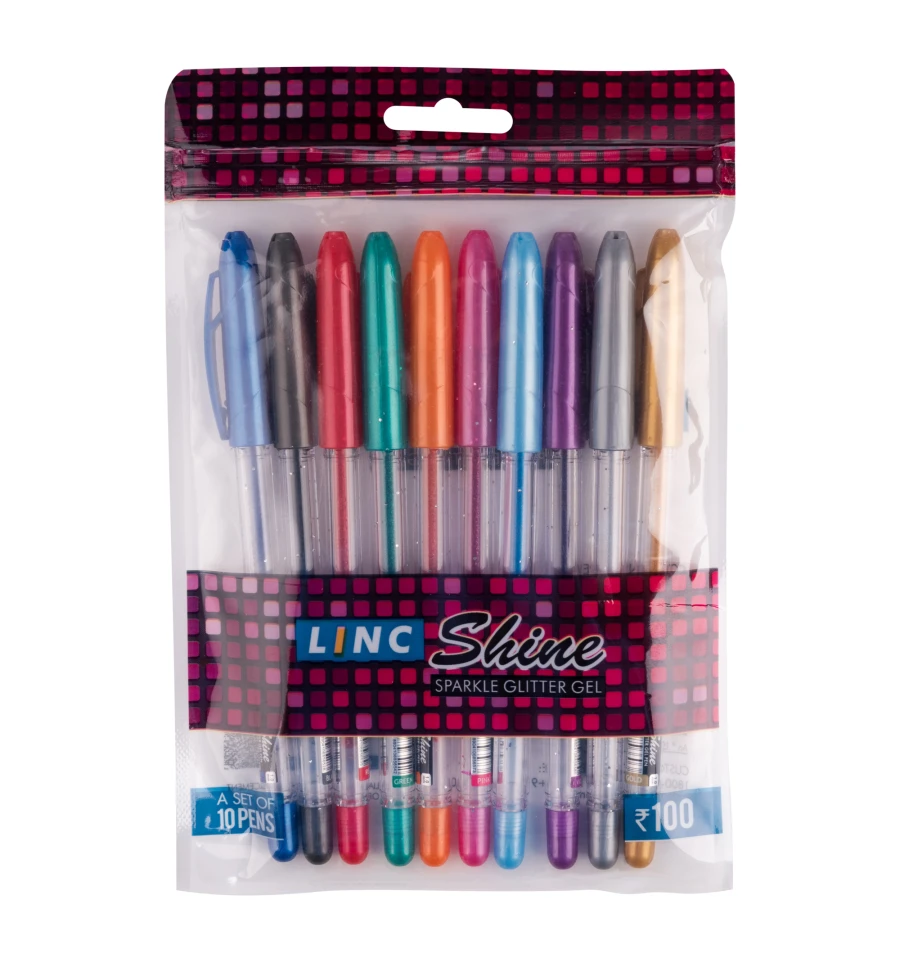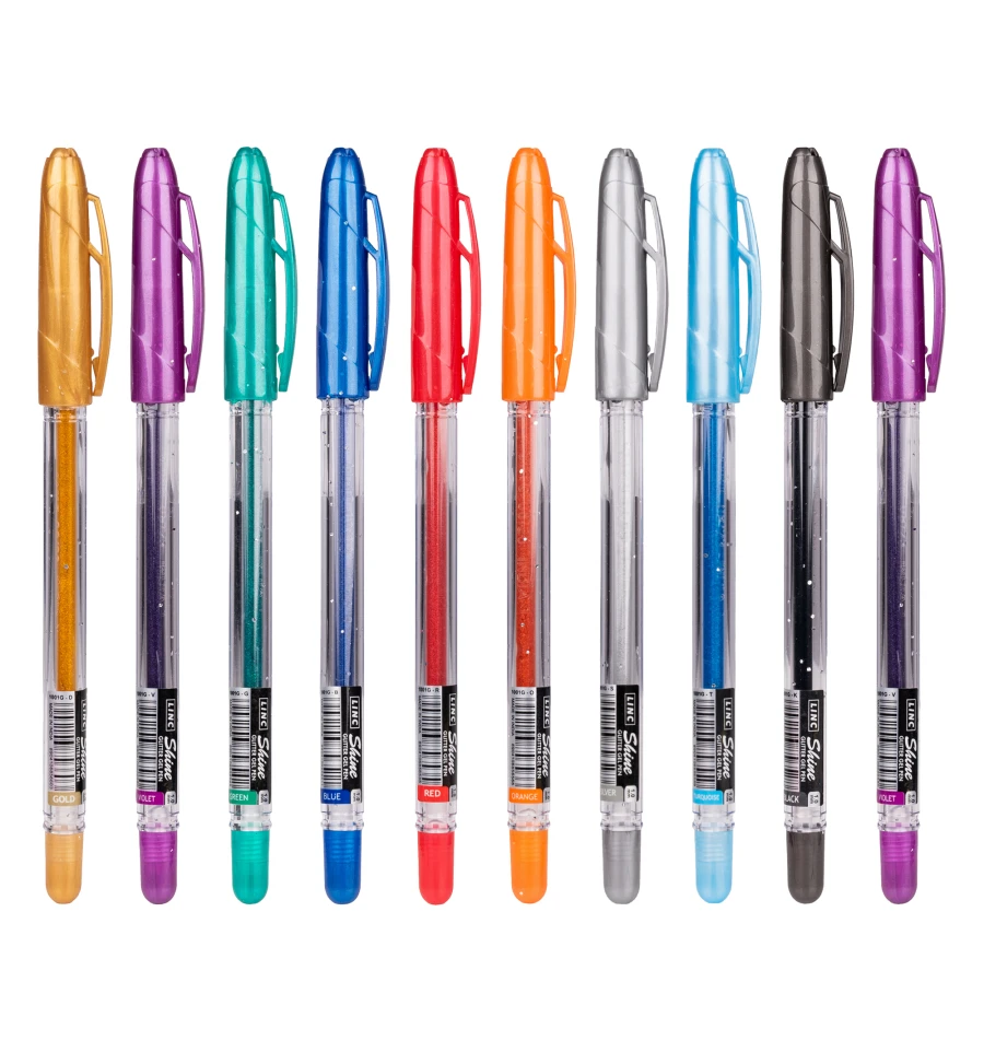 Ручка гелевая с глиттером Shine LINC 1,0 мм набор 10 шт микс цветов
