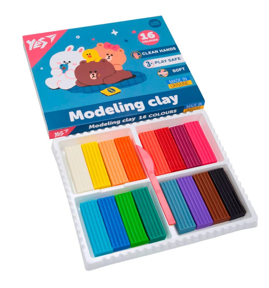 Пластилин ТМ Yes Line Friends — это набор из 16 ярких и насыщенных цветов, позволит вашему ребёнку создать множество разнообразных поделок. Изготовлен из высококачественных, нетоксичных и безопасных компонентов. Обладает отличными пластичными свойствами: легко разминается детскими ручками, не прилипает к пальцам, хорошо держит форму, легко смешивается, не рвется, не окрашивает руки и не высыхает, поэтому его можно использовать снова и снова. Чистые, красивые цвета с однородной текстурой и нейтральным ароматом легко смешиваются между собой для получения дополнительных оттенков. Идеально подойдет как для малышей, которые только начинают лепить, так и для деток постарше. Отличный выбор для развивающих занятий, садика, школы и творчества.