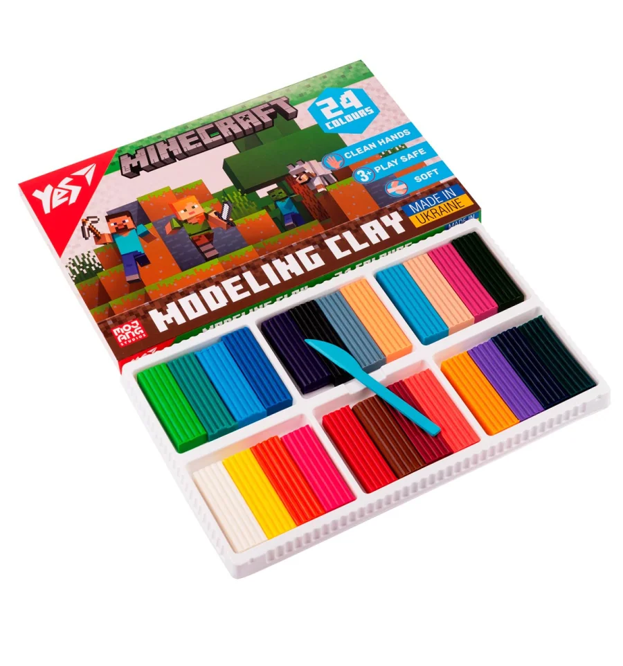 Пластилин ТМ Yes Майнкрафт — это набор из 24 ярких и насыщенных цветов, позволит вашему ребёнку создать множество разнообразных поделок. Изготовлен из высококачественных, нетоксичных и безопасных компонентов. Обладает отличными пластичными свойствами: легко разминается детскими ручками, не прилипает к пальцам, хорошо держит форму, легко смешивается, не рвется, не окрашивает руки и не высыхает, поэтому его можно использовать снова и снова. Чистые, красивые цвета с однородной текстурой и нейтральным ароматом легко смешиваются между собой для получения дополнительных оттенков. Идеально подойдет как для малышей, которые только начинают лепить, так и для деток постарше. Отличный выбор для развивающих занятий, садика, школы и творчества.