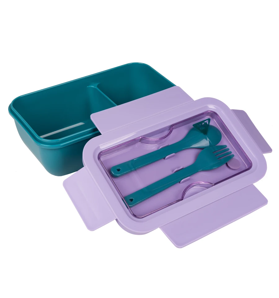 Благодаря своей прямоугольной форме, ланч-бокс идеально помещается в сумки и рюкзаки, не занимая много места. 4 клапана закрытия обеспечат легкость транспортировки и помогут сохранить ваши блюда в идеальном состоянии.