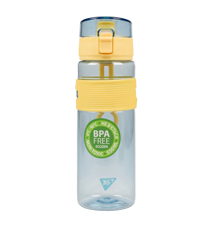 Бутылка для воды Yes Fusion – безопасная, изготовлена ​​из инновационного материала экозена. Новейший материал экозен – отличается чрезвычайной прочностью, имеет отличные показатели устойчивости к внешнему воздействию, абсолютно безопасен, не токсичен, не впитывает посторонние запахи, выдерживает высокие температуры напитков, не содержит BPA.