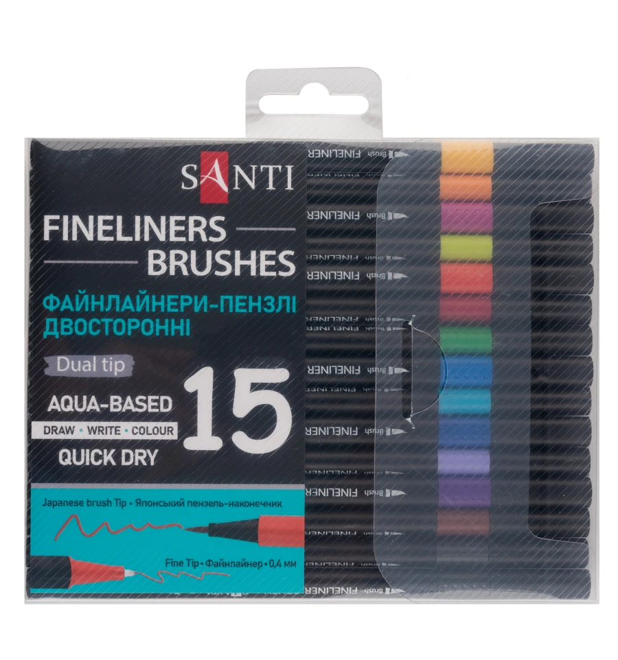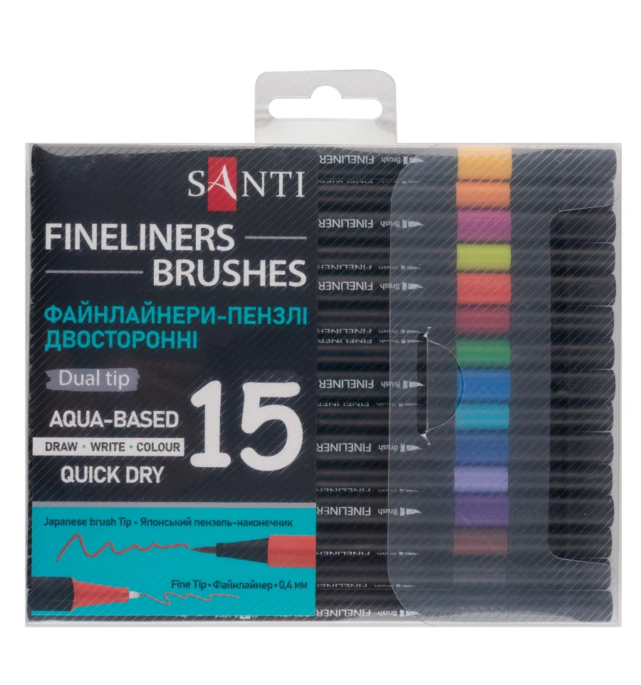 Файнлайнеры от бренда SANTI имеют чернила на водной основе. Высокая плотность чернил обеспечивает четкую непрерывную линию.