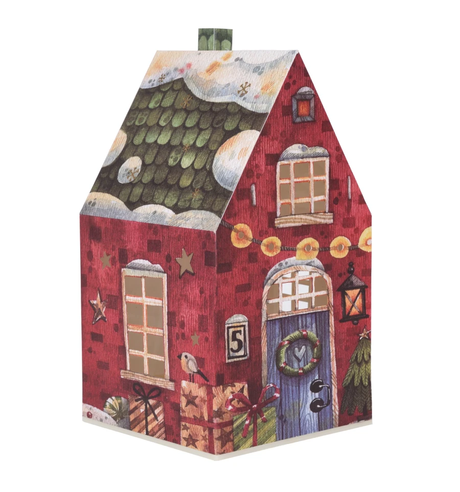 Декор новогодний Yes! Fun Домик-светильник 21см красный картон LED