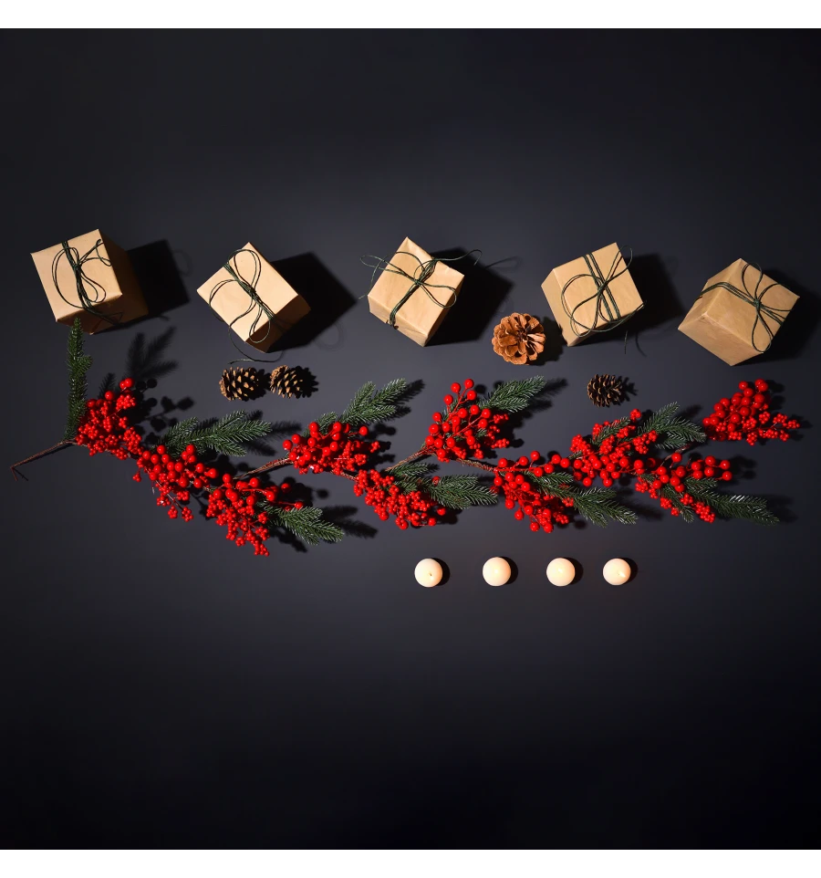 Ветка декоративная Yes! Fun Красные ягоды и хвоя, 130 см