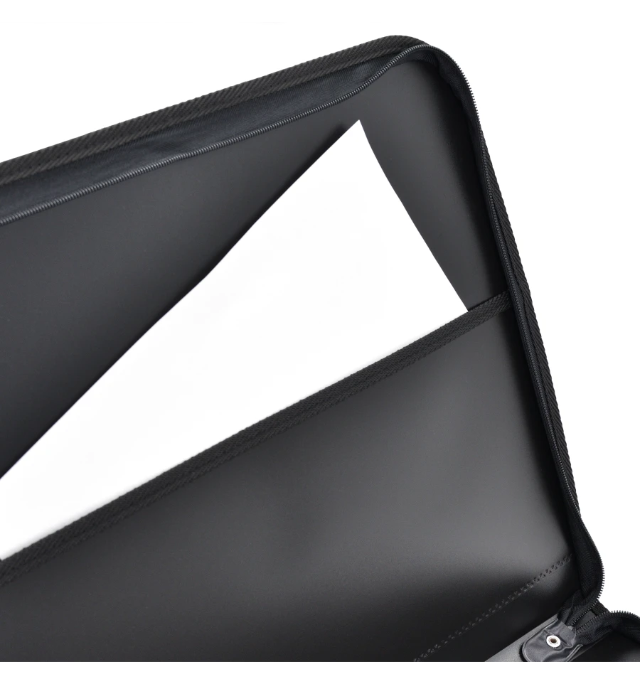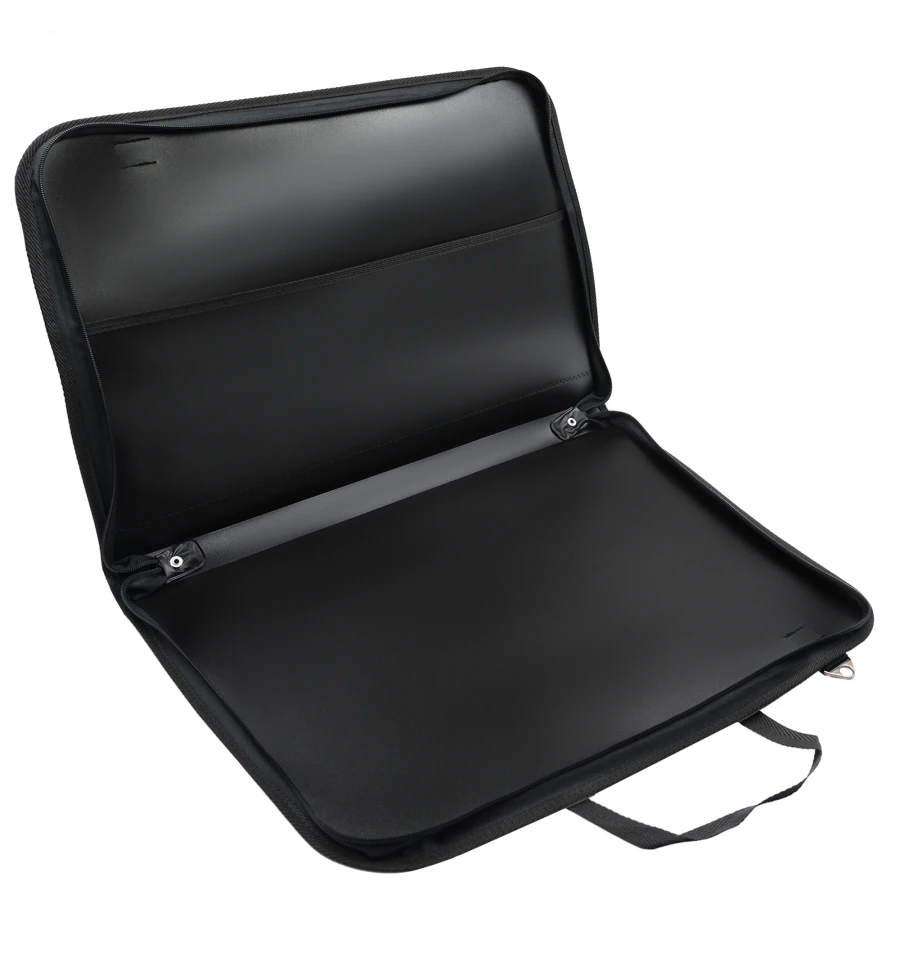 - Комфорт: удобная молния надежно фиксирует содержимое, а съемный ремень позволяет носить папку на плече.