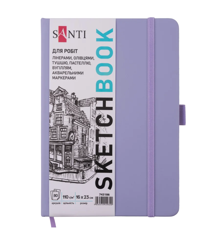 Скетчбук ТМ SANTI подходит для работ линерами, карандашами, тушью, пастелью, углем, акварельными маркерами. Идеален для скетчинга, каллиграфии, архитектурных набросков и других видов творчества.