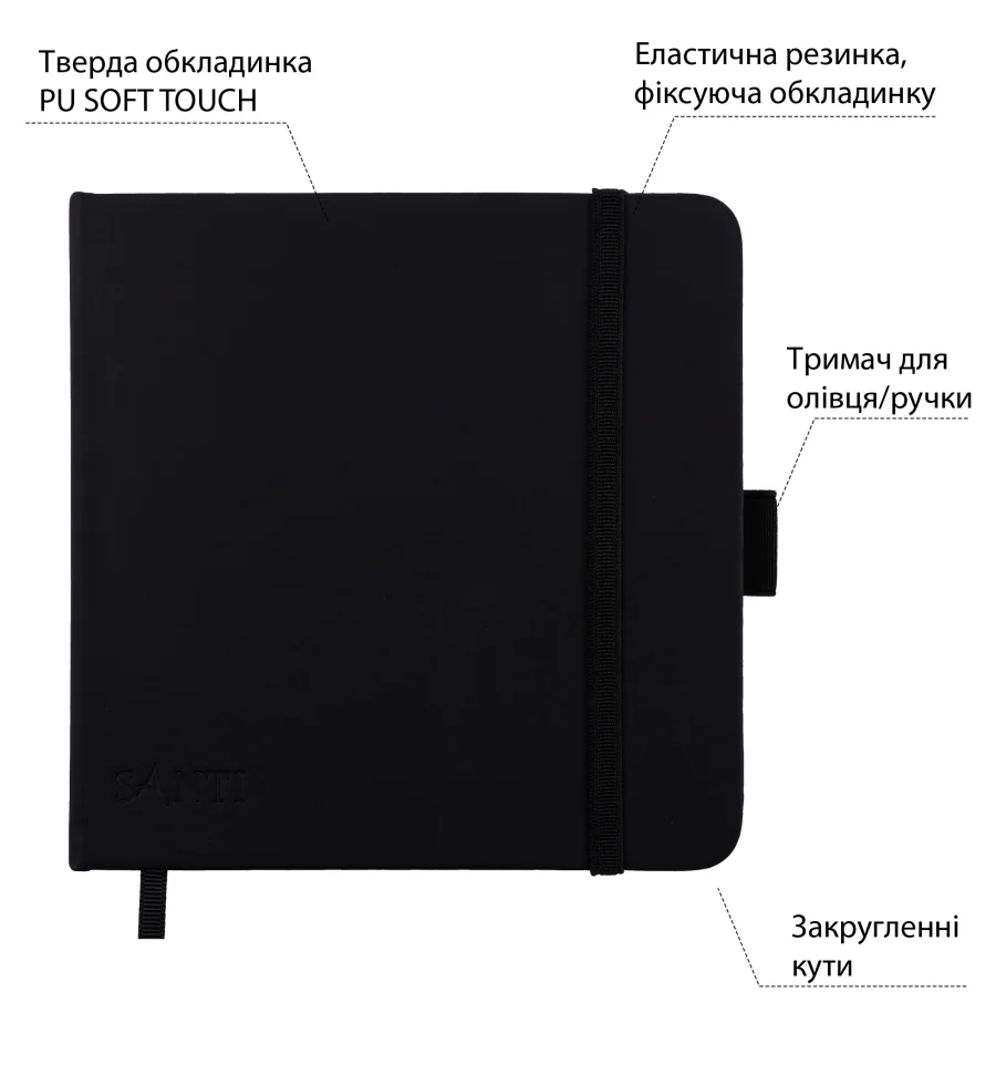 Твердая PU обложка SOFT-TOUCH обеспечивает удобство зарисовок. Петля-держатель для ручки или карандаша гарантирует, что ваш инструмент всегда будет под рукой. Внутри 80 листов бумаги кремового цвета, плотностью 110 г/м². Благодаря бескислотному составу бумаги, используемой в блокноте ТМ SANTI ваши работы сохранятся на долгие годы, а гладкая поверхность бумаги с едва ощутимой текстурой обеспечит плавное скольжение карандаша или ручки по листу, позволяя создавать детализированные и выразительные работы. Специально закругленные углы скетчбука защитят ваш рюкзак или сумку от повреждений, а эластичная резинка-фиксатор надежно удержит страницы и защитит их от замятия.