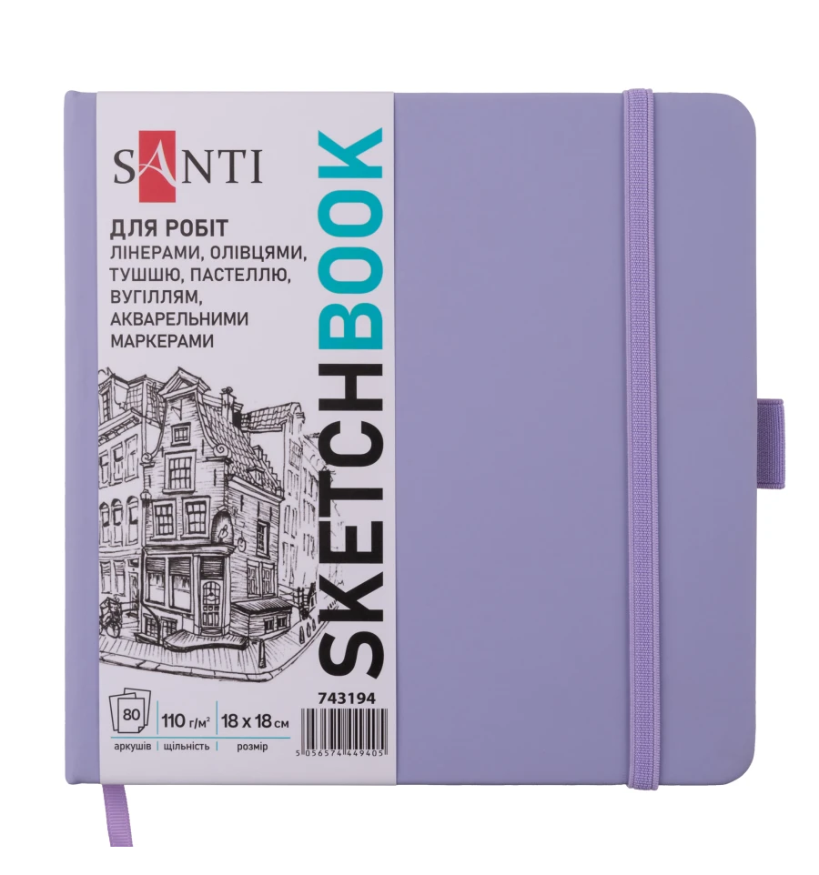 Скетчбук ТМ SANTI подходит для работ линерами, карандашами, тушью, пастелью, углем, акварельными маркерами. Идеален для скетчинга, каллиграфии, архитектурных набросков и других видов творчества.