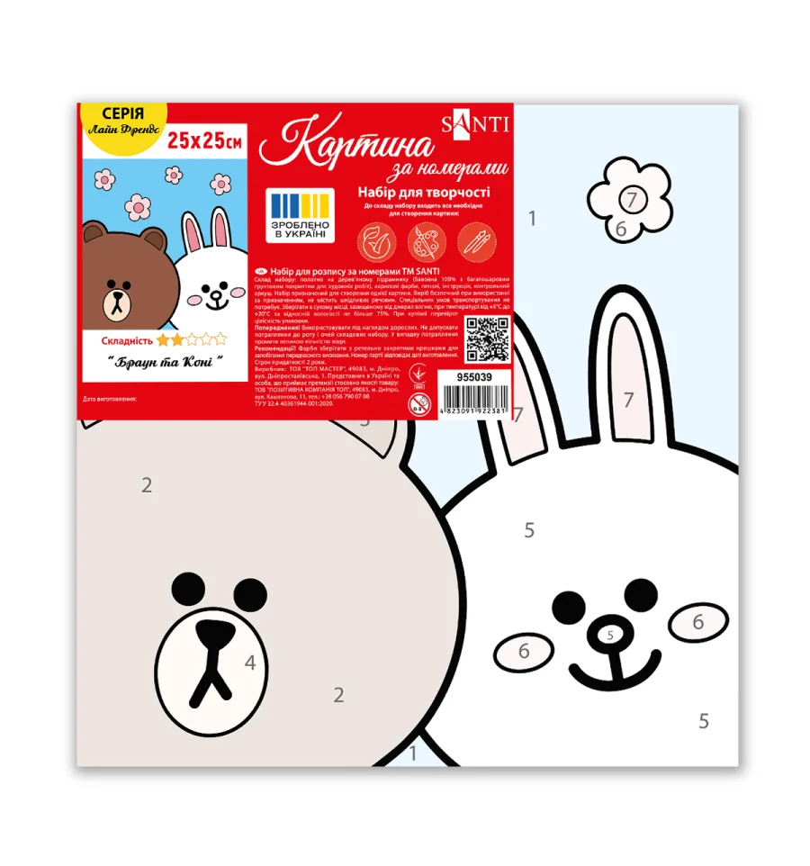 Картина по номерам ТМ SANTI "Лайн Френдс. Браун и Кони" — это возможность подарить ребёнку радость творчества, уверенность в своих силах и новые знания!