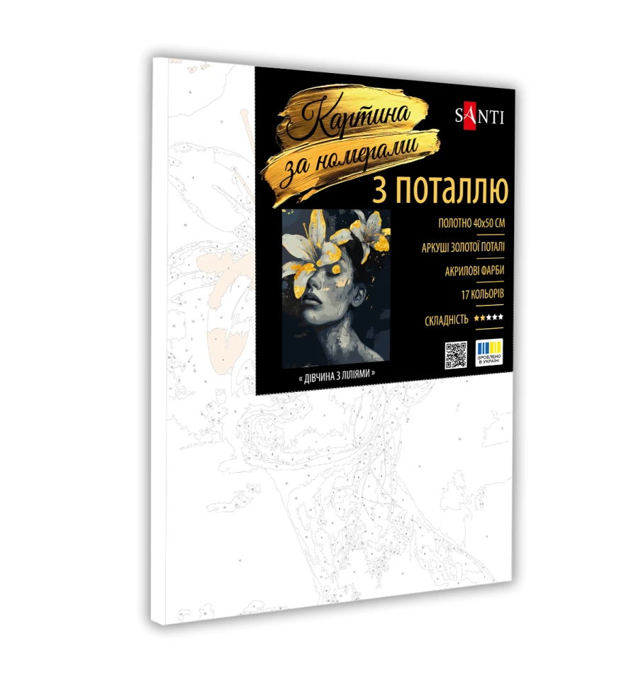 Картина по номерам "Девушка с лилиями" ТМ SANTI с поталью это потрясающий подарок для себя и ваших близких!