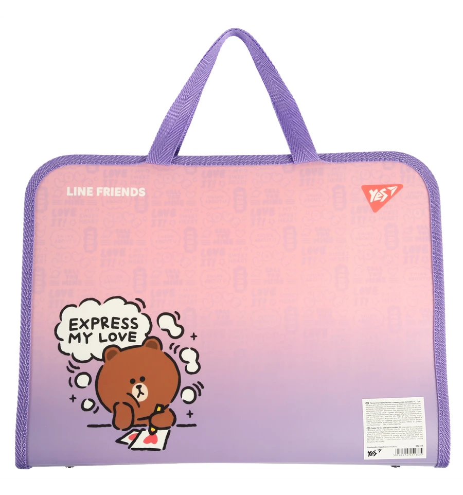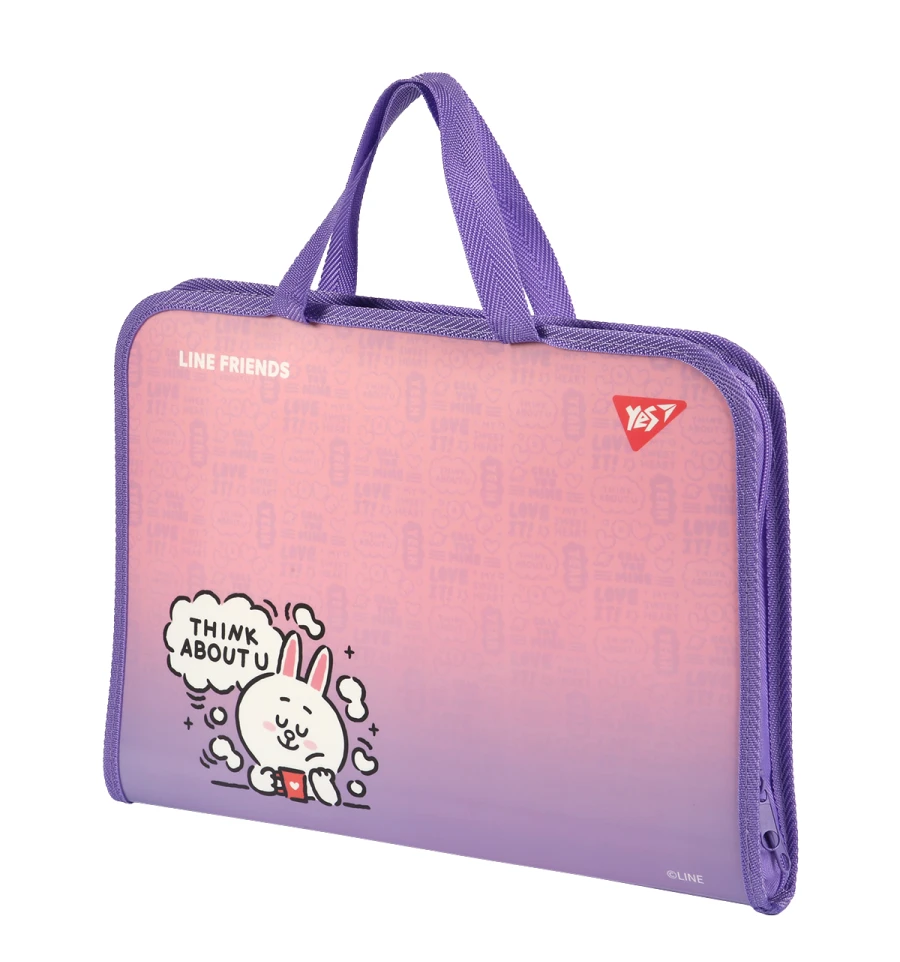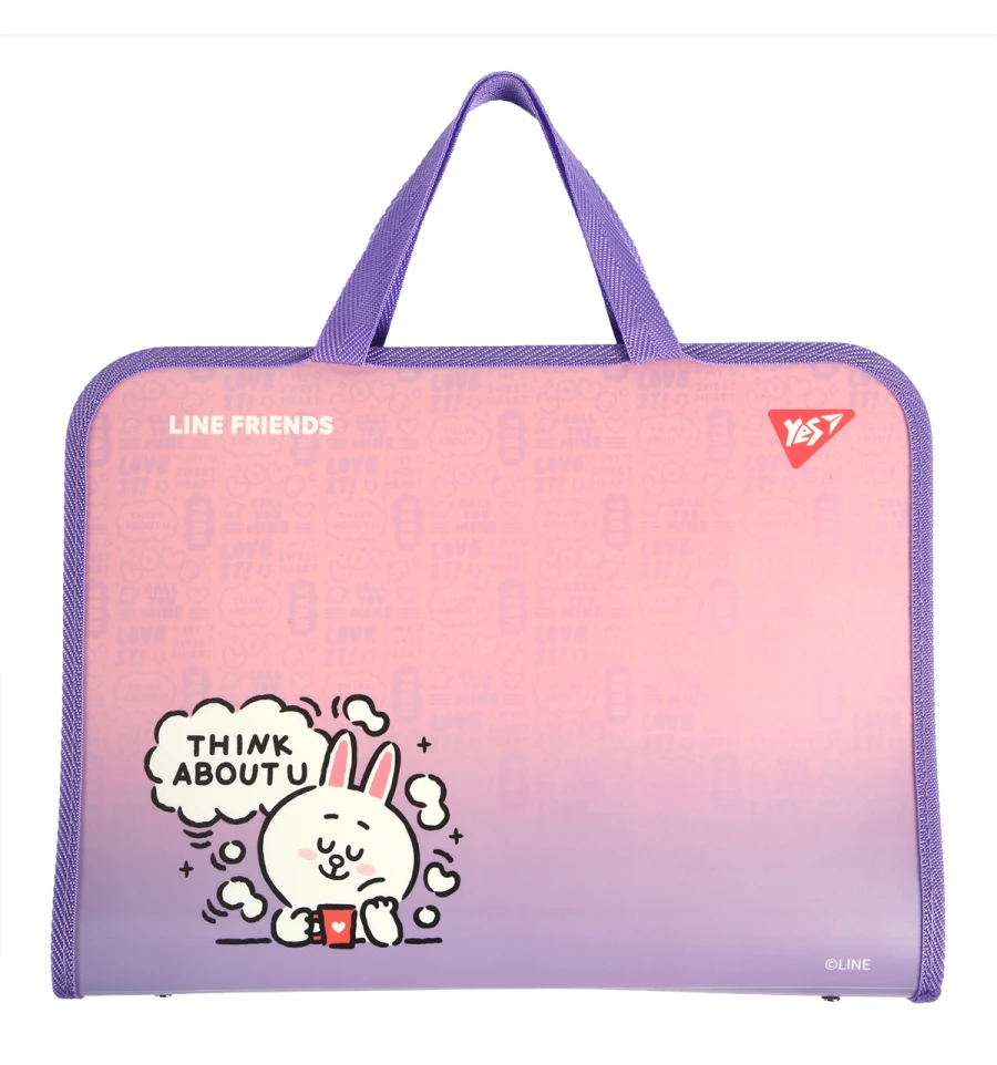Обратите внимание на тематический дизайн папки-портфеля YES серии "Line Friends"! Вы можете подобрать индивидуальную коллекцию канцелярских принадлежностей одноименной серии.