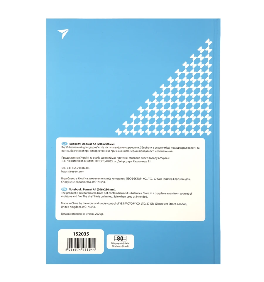 Блокнот YES Success is built. Blue А4 80 листов линия