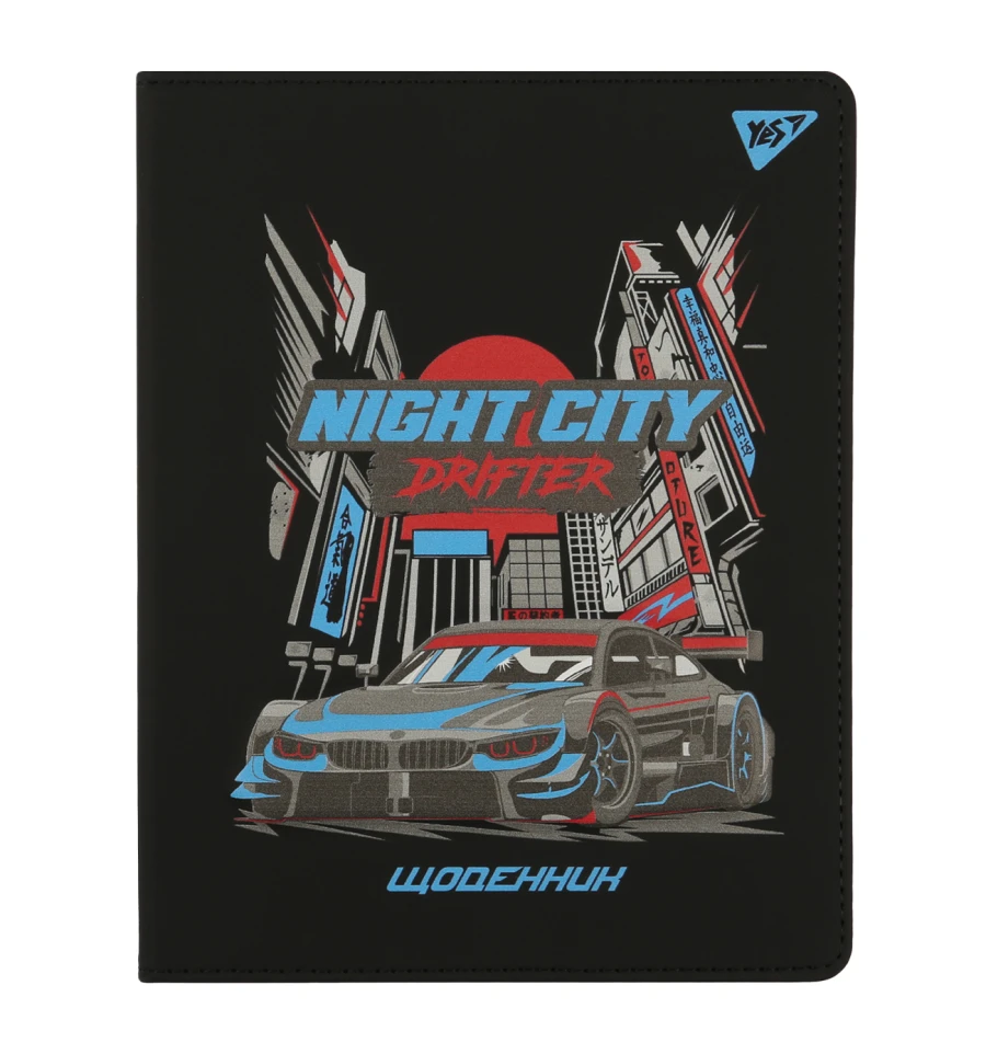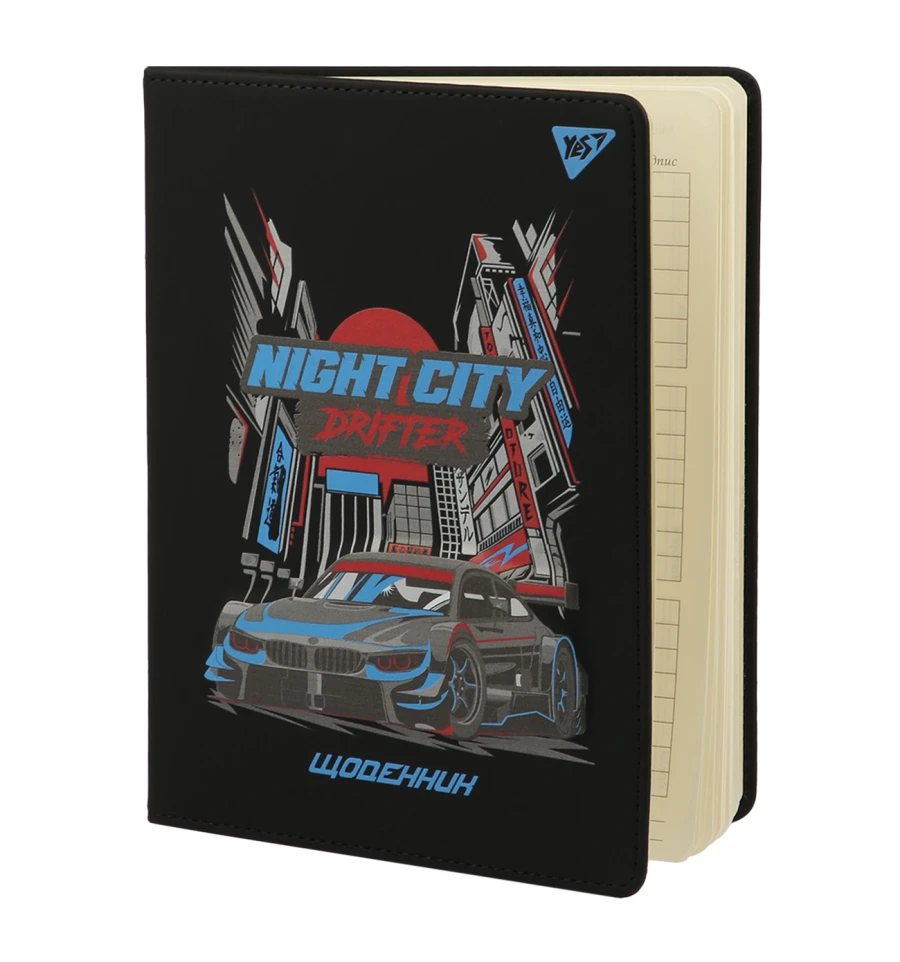 Дневник PU "Night city drifter" торговой марки YES предназначен для заполнения домашних заданий учеником, выставления оценок учителями и родительского контроля за успеваемостью