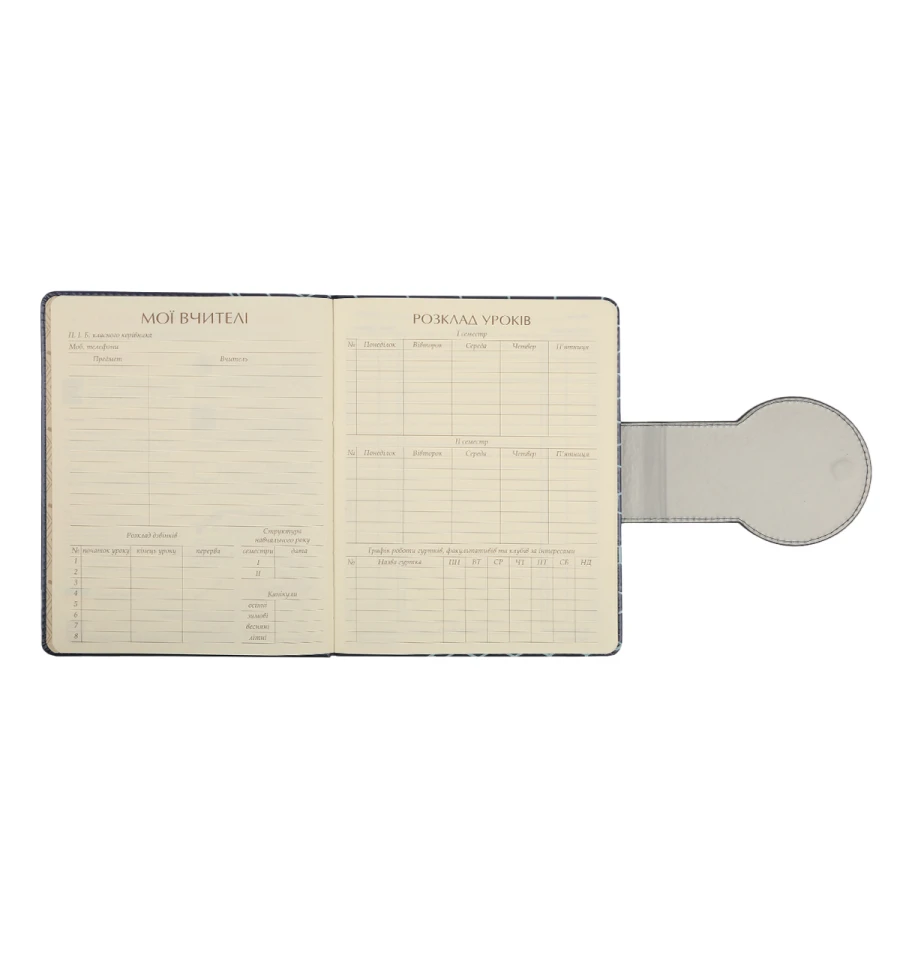 - Информационный блок - данные ученика, учителей и школы, расписание уроков и звонков, табель успеваемости
